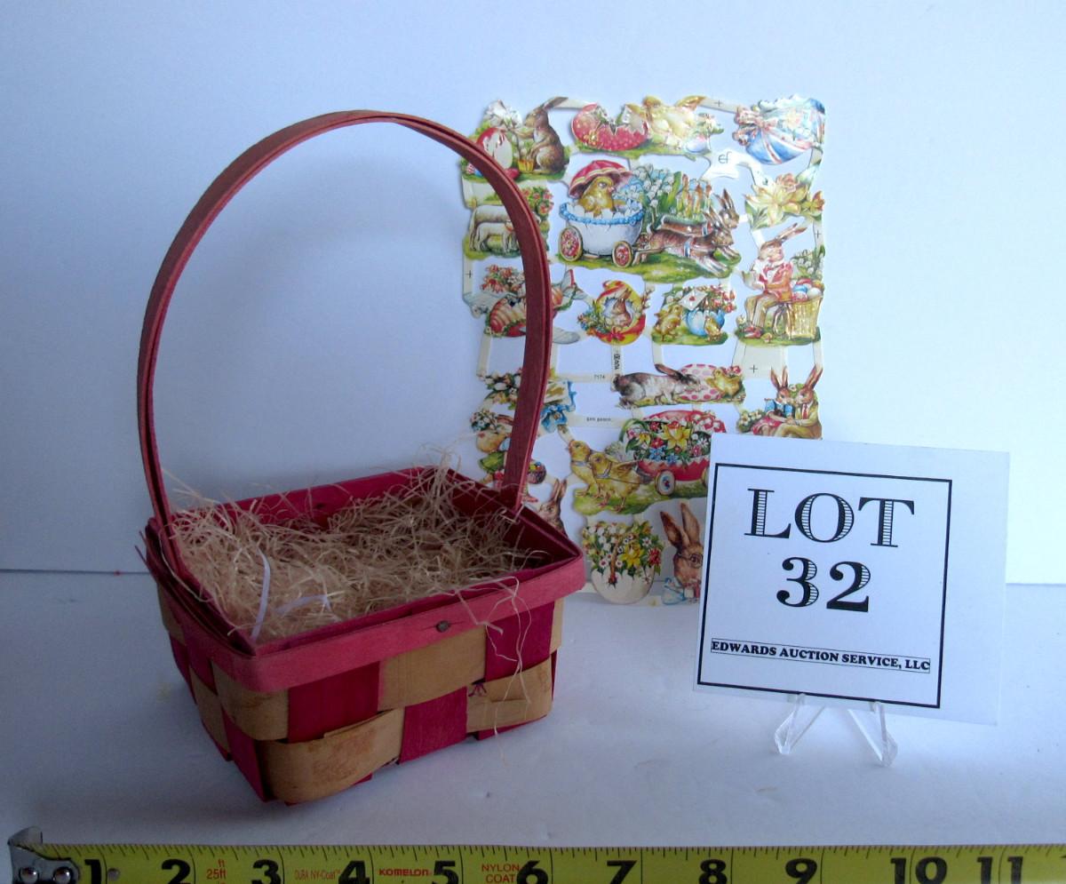 Vintage Smaller Size Easter Basket and 1980s German Easter Scraps