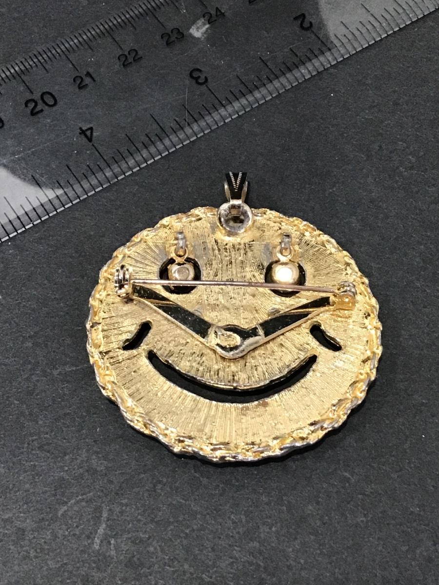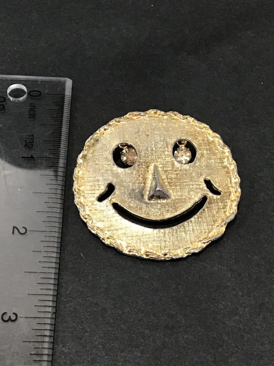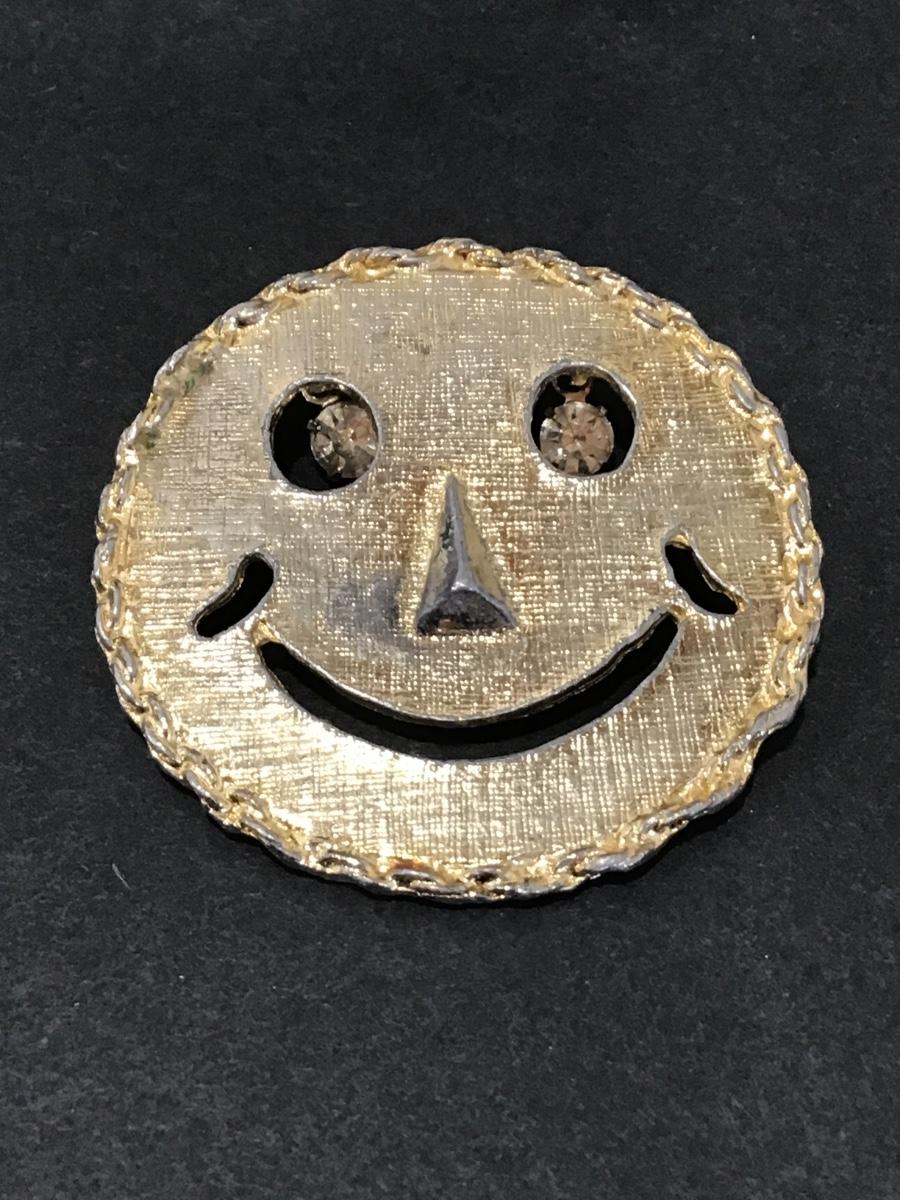 Vintage smiley, face, gold, toned, brooch