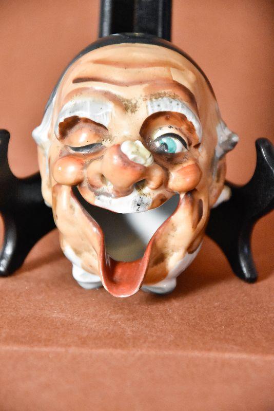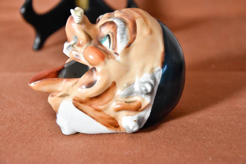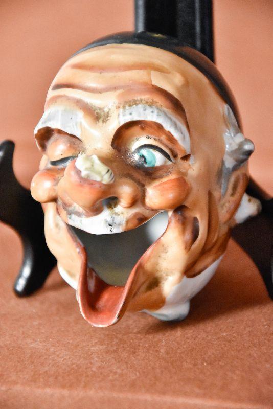 Vintage Smoking Ashtray of Man 's Head Face w Bee on Nose PORCELAIN Japan MONK