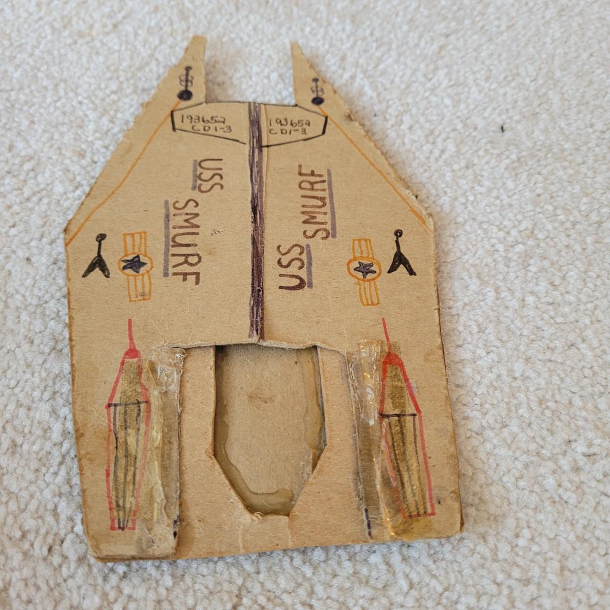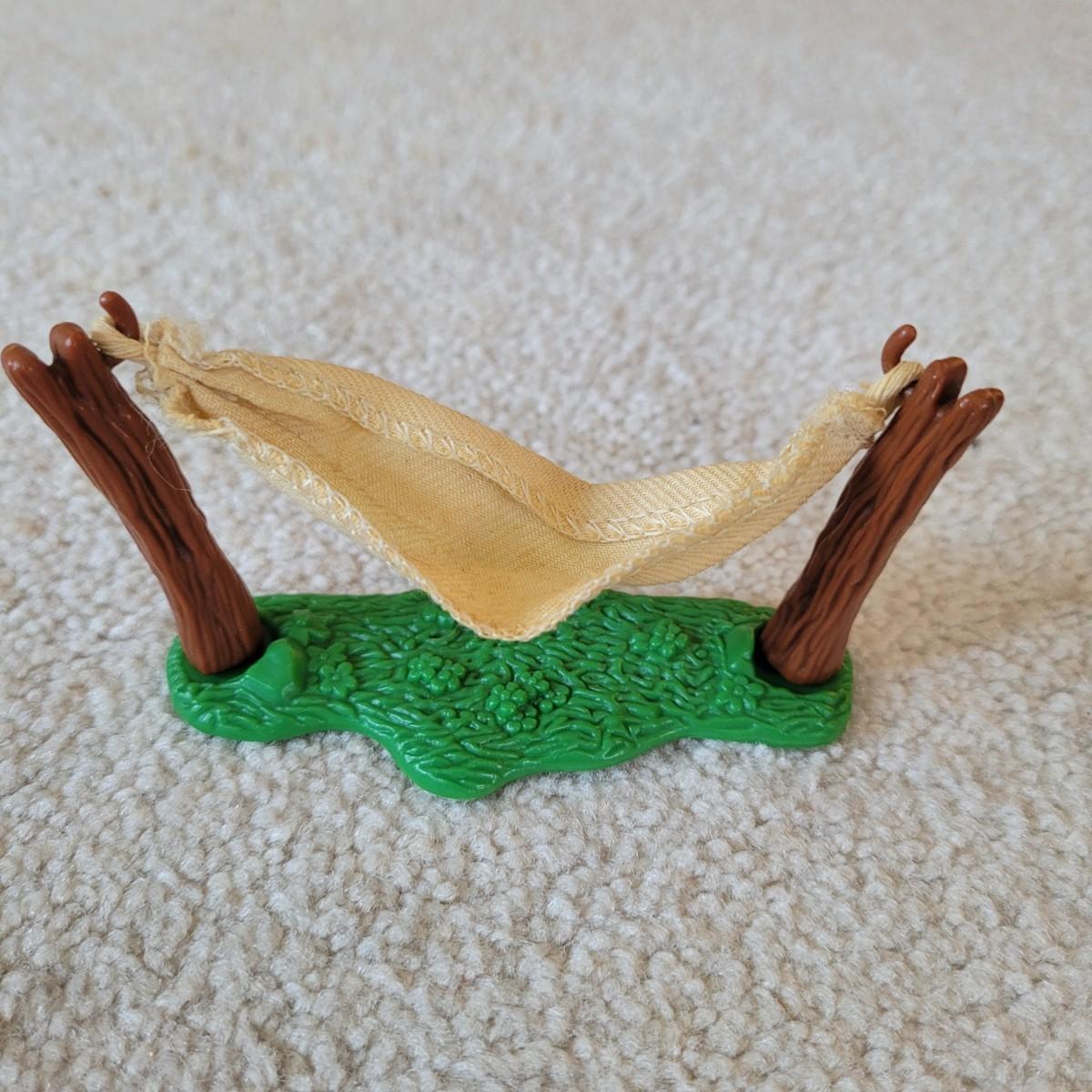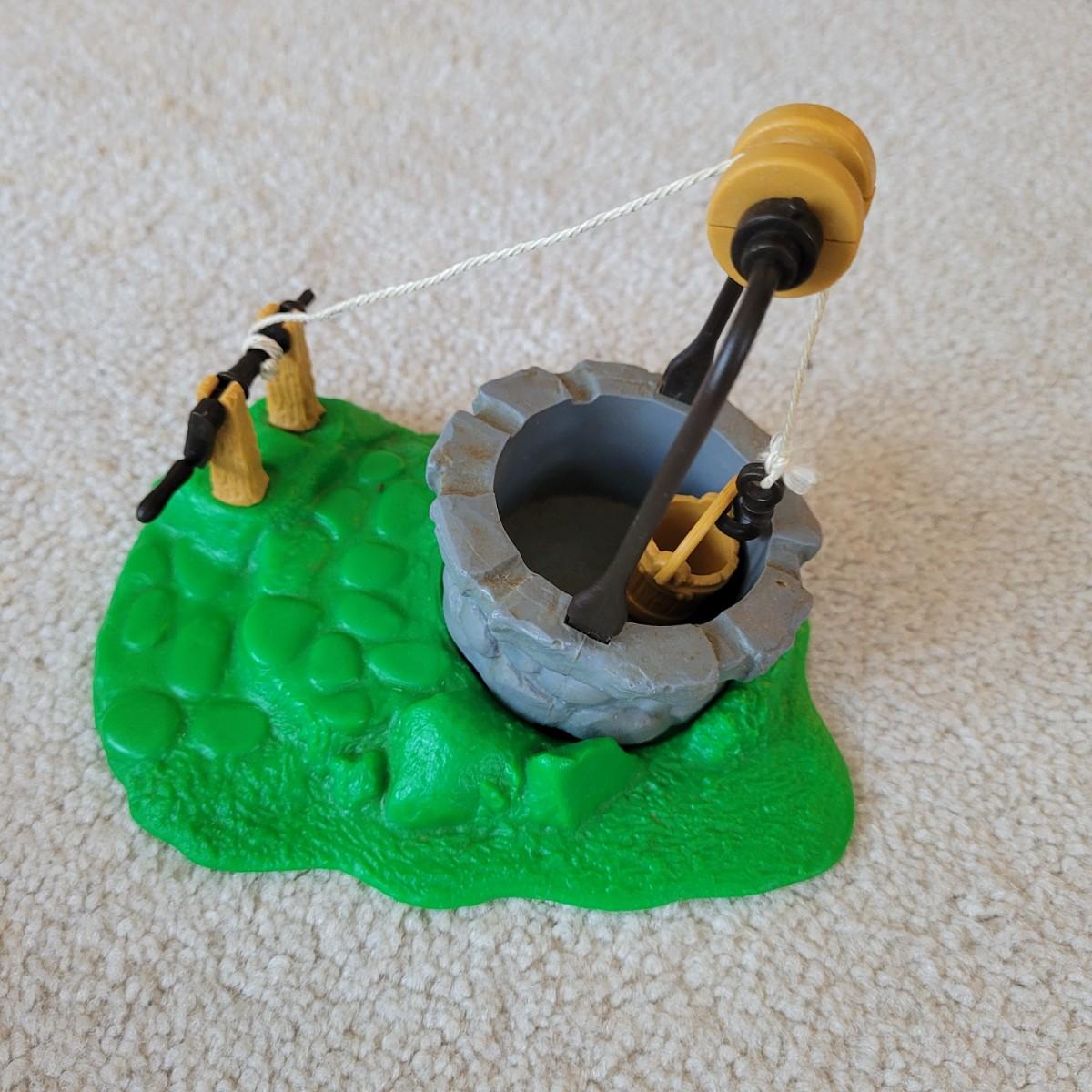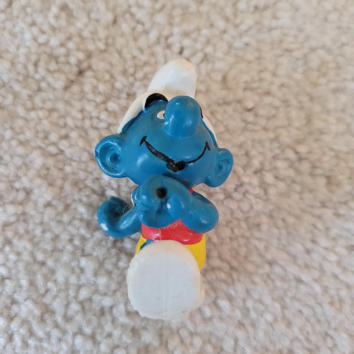 This lot includes a collection of vintage Smurfs toys and figurines. Included are a mushroom house, a well, a hammock, and a home made cardboard spaceship. Different types of Smurf figurines include: the gymnast, guitarist, pirate, artist, leprechaun, hiker, cupid, doctor, astronaut, mail person, and musician. One of the figurines appears to be missing its prop. The astronauts helmet is taped.