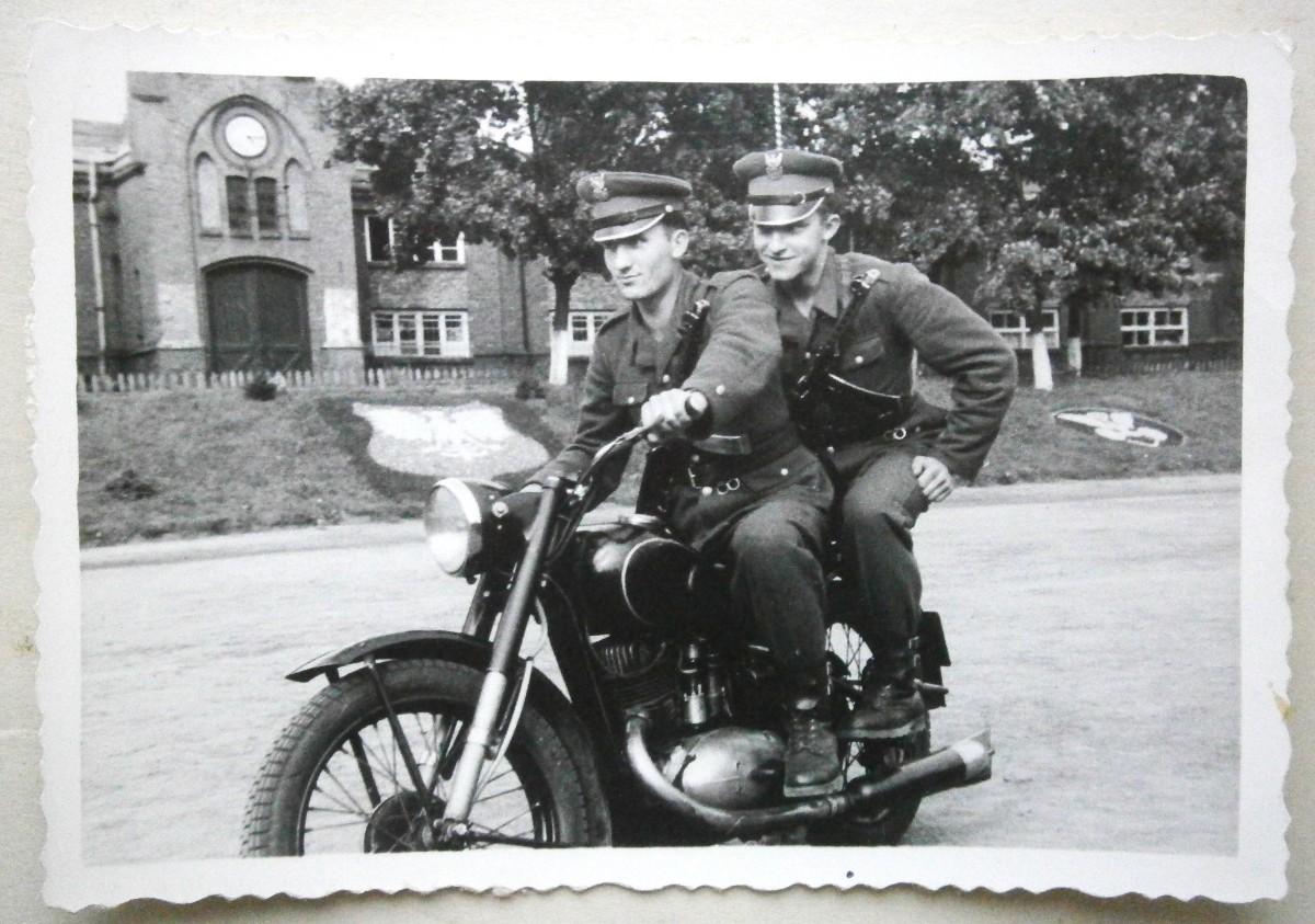 Vintage Snapshot of 2 Soldiers on Motorcycle