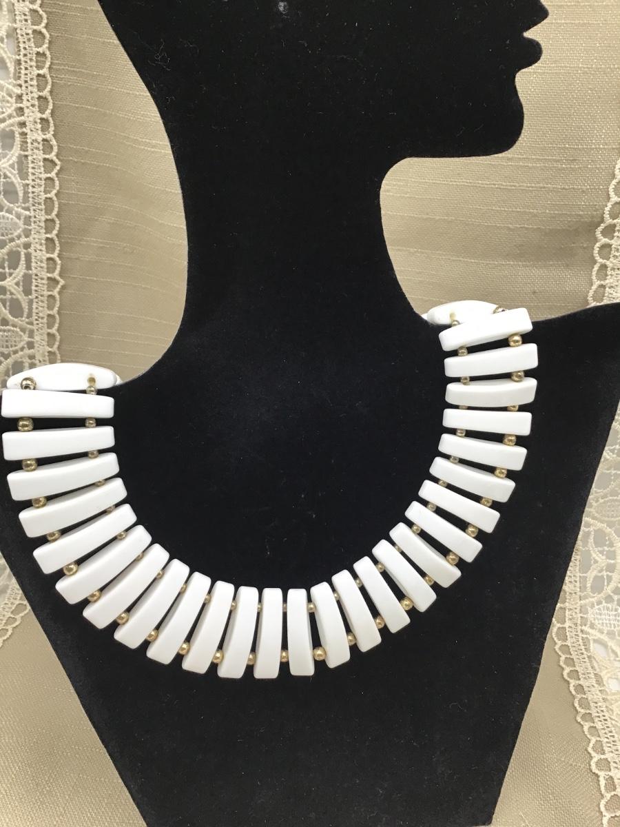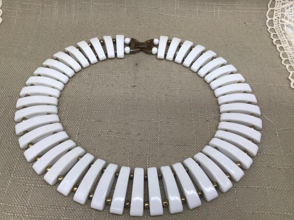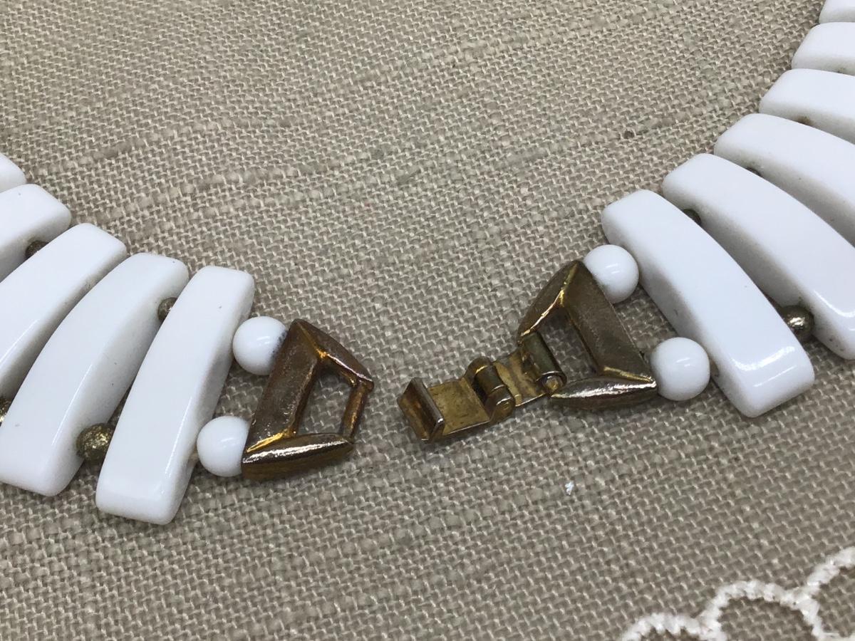 Vintage Snow White Gold Bead Lucite/Resin Type Track Necklace