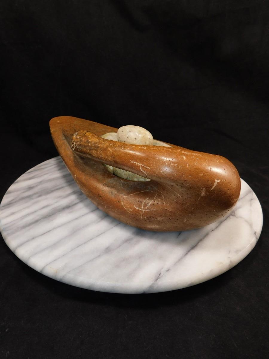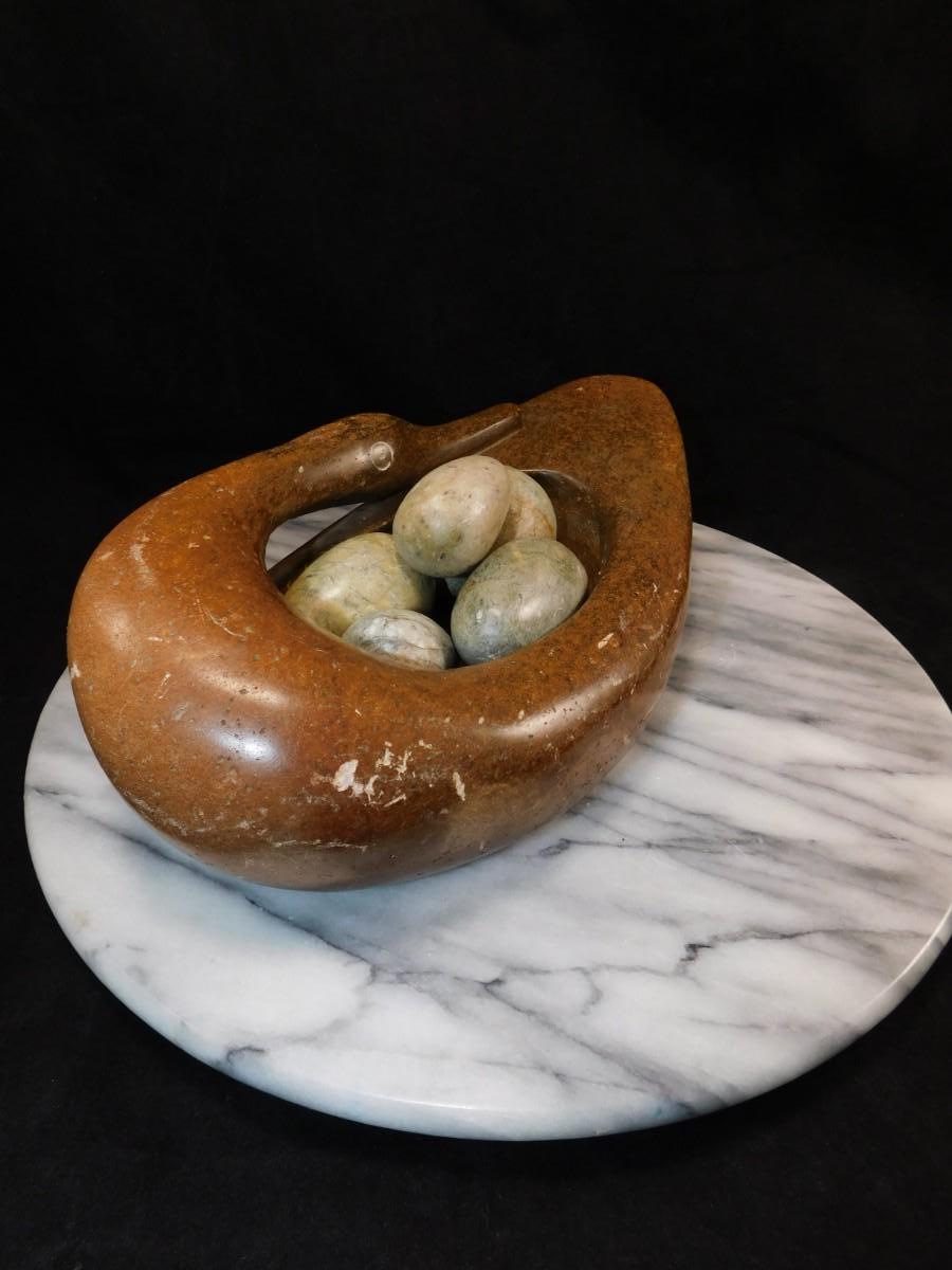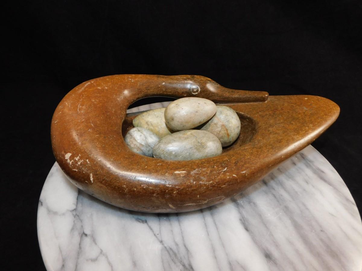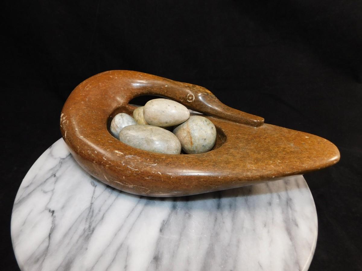 Vintage Soapstone Swan w/ 5 Soapstone Eggs 11"x3.5"