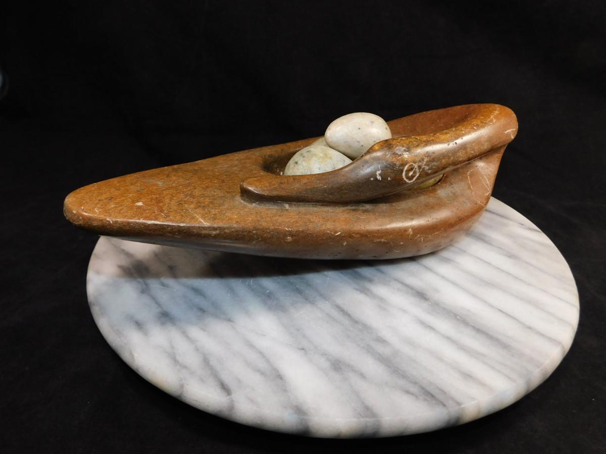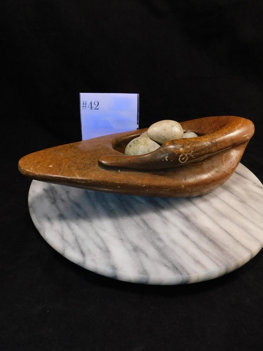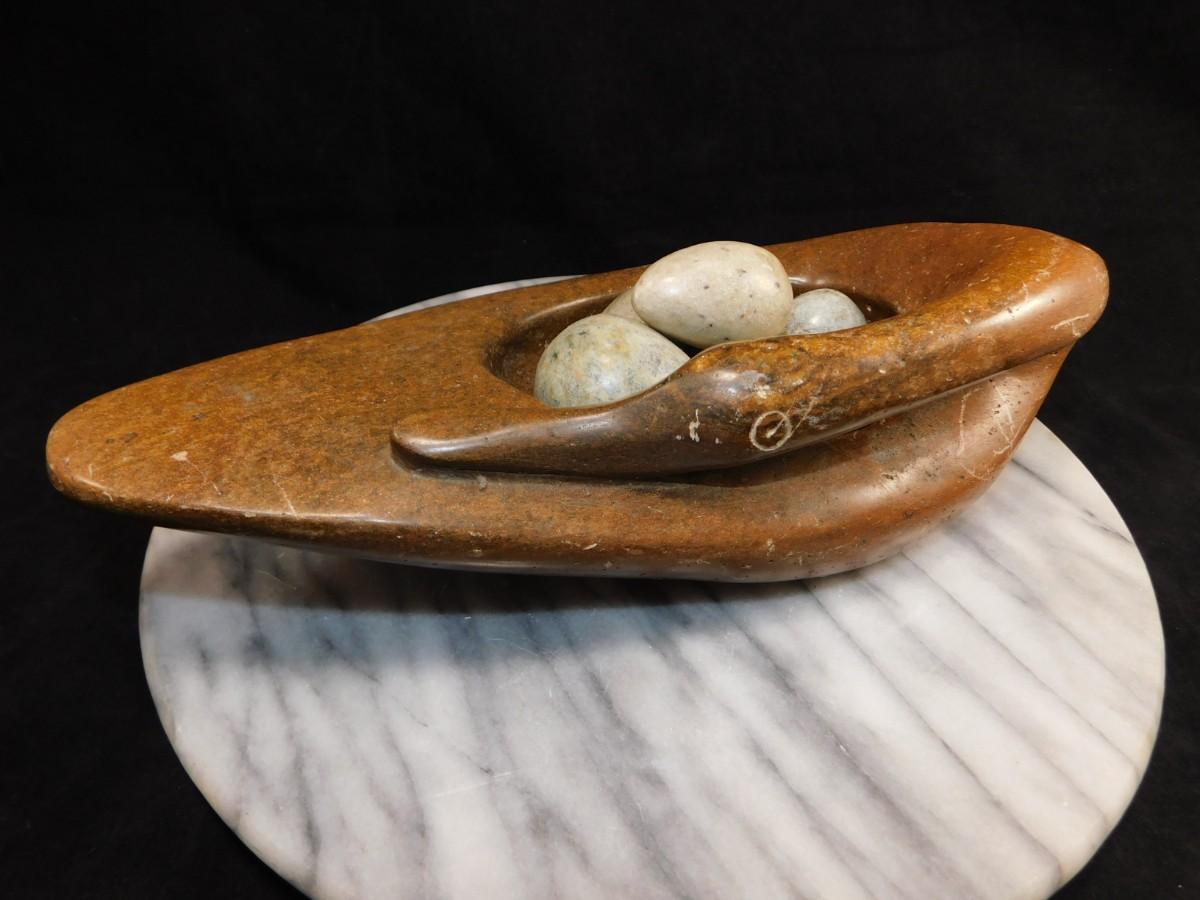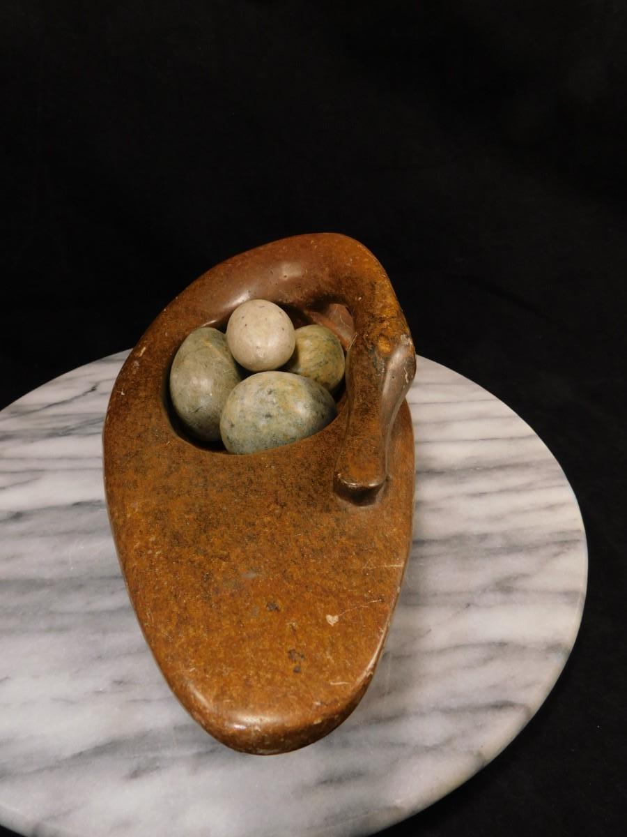Vintage Soapstone Swan w/ 5 Soapstone Eggs 11"x3.5"