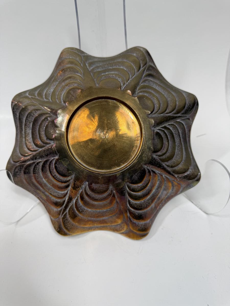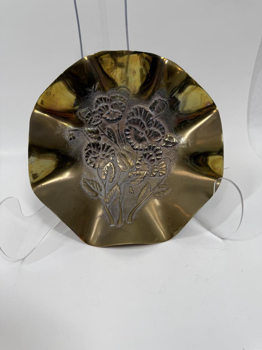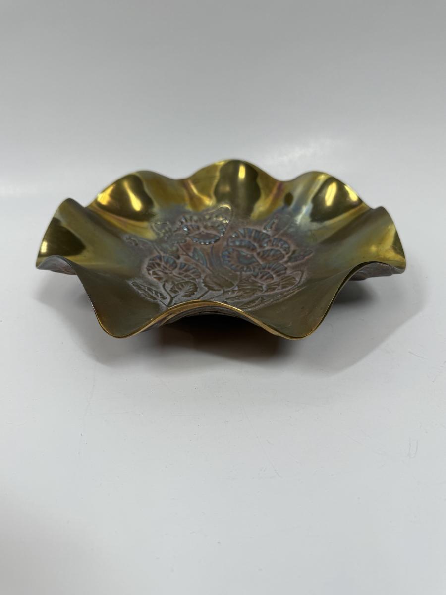 Vintage Solid Brass 8" Scalloped Edge Candy / Nut Dish Embossed Floral Design