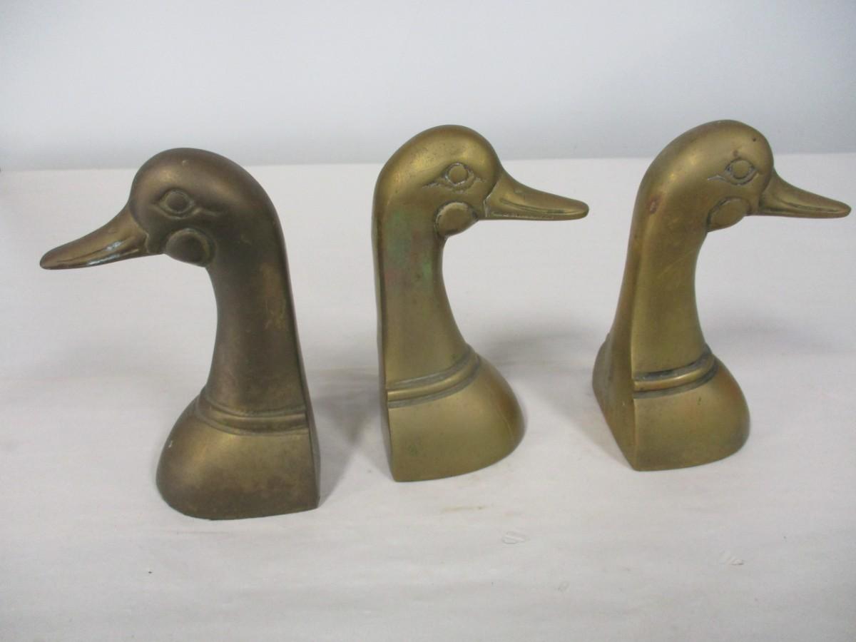 Vintage Solid Brass Duck Head Bookends