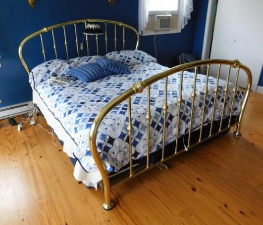 Vintage Solid Brass King Bed Frame and Matress Set very appealing and bright. Mattress will need to be cleaned.