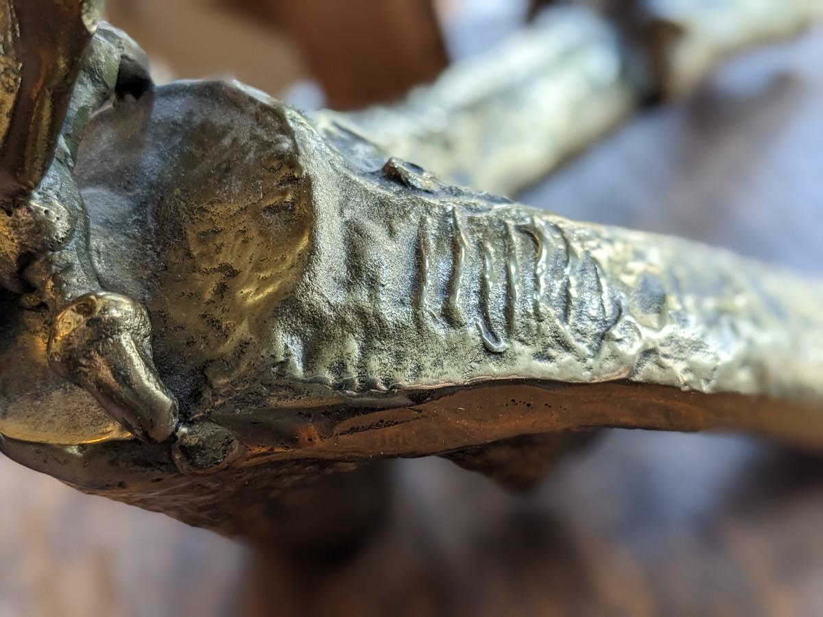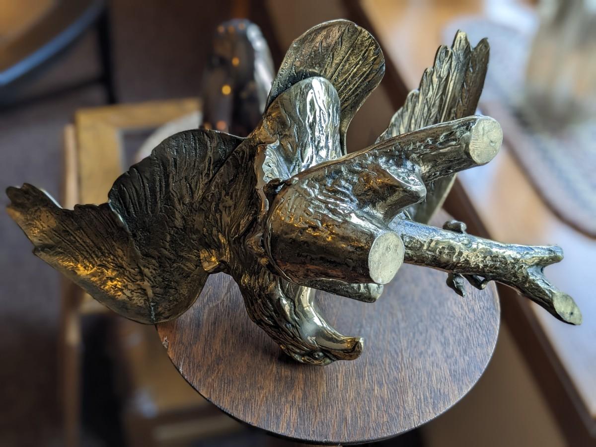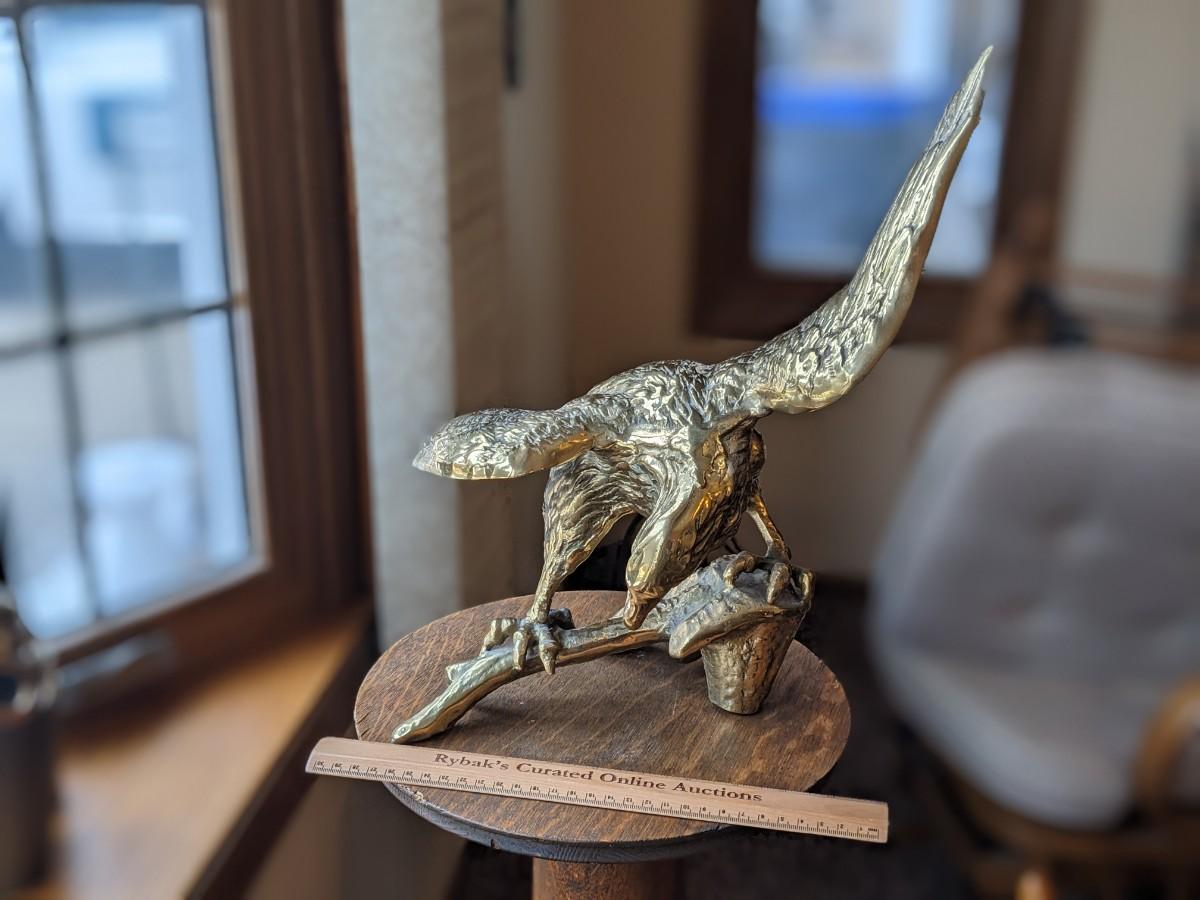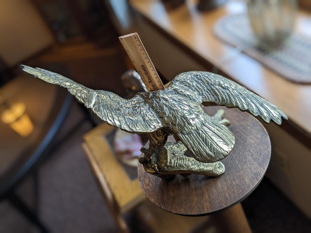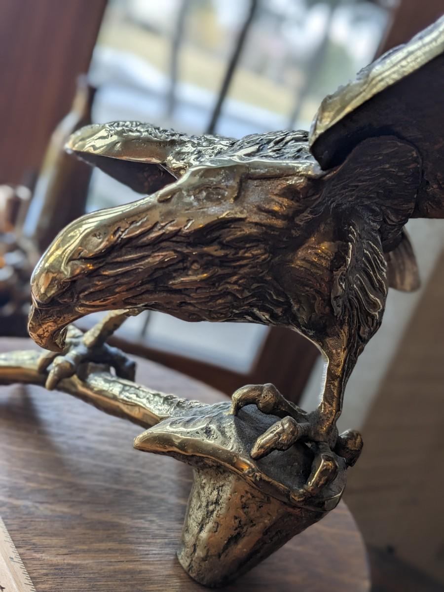 VINTAGE SOLID BRASS PERCHED EAGLE STATUE, 18" WING SPAN