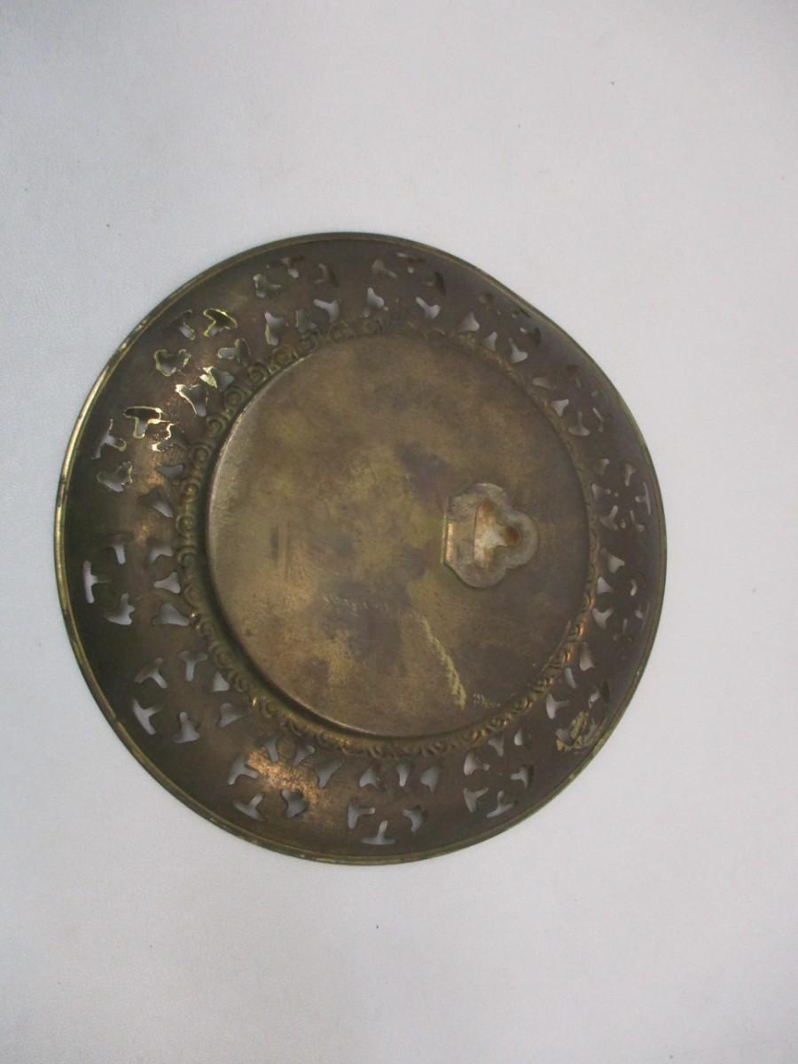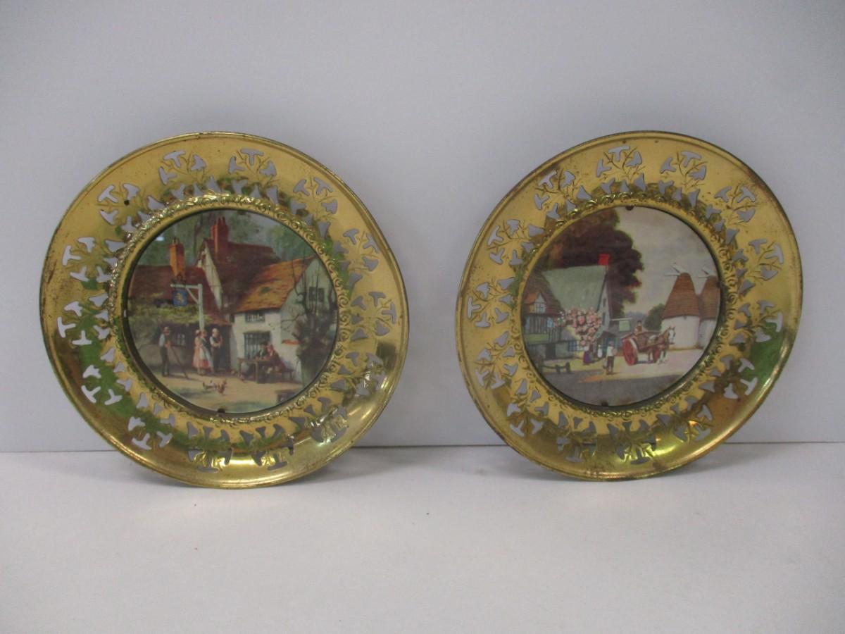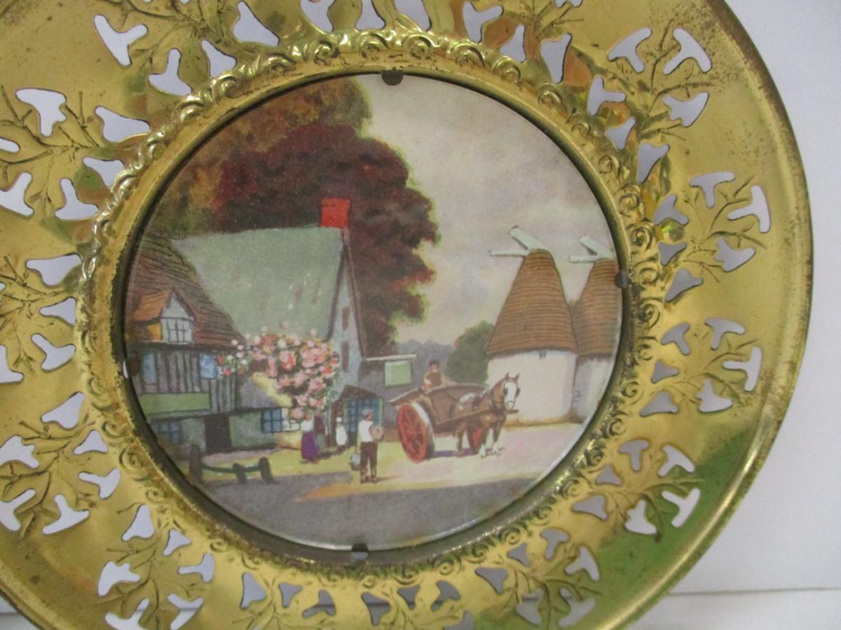 Vintage Solid Brass Wall Plate w/ Foil Print English Scenes Made In England