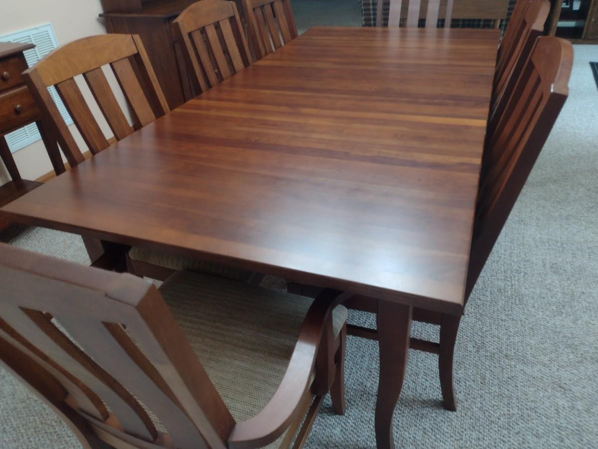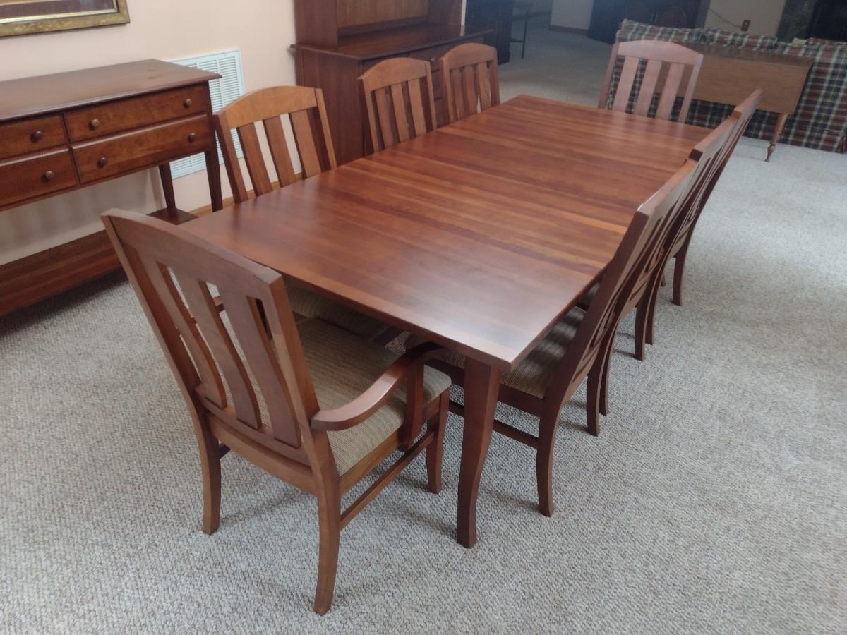 Vintage Solid Cherry Wood Dining Table with Eight Chairs by Crescent of Tennessee