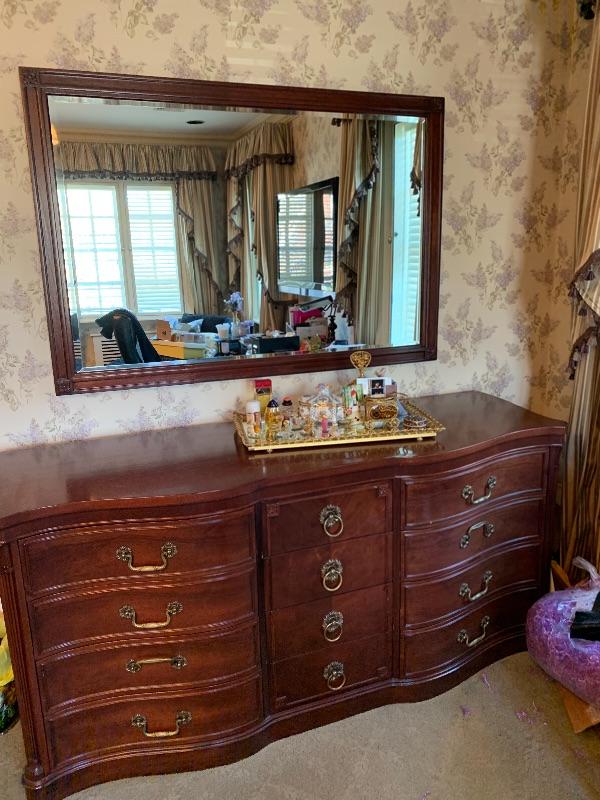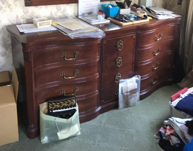 Vintage Solid Mahogany King Headboard, Dresser and Two Nightstands