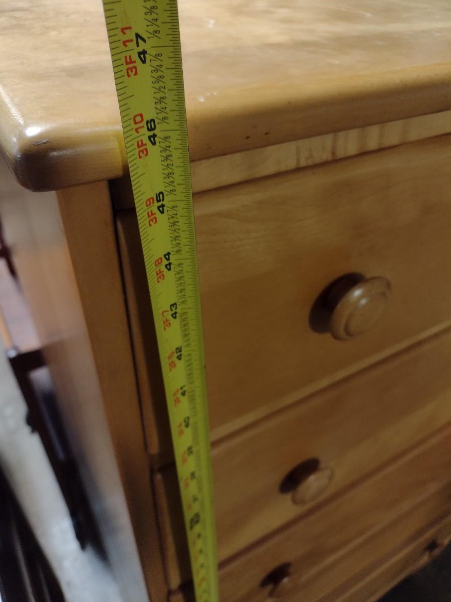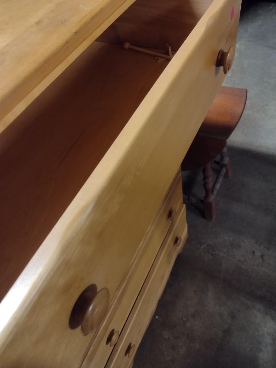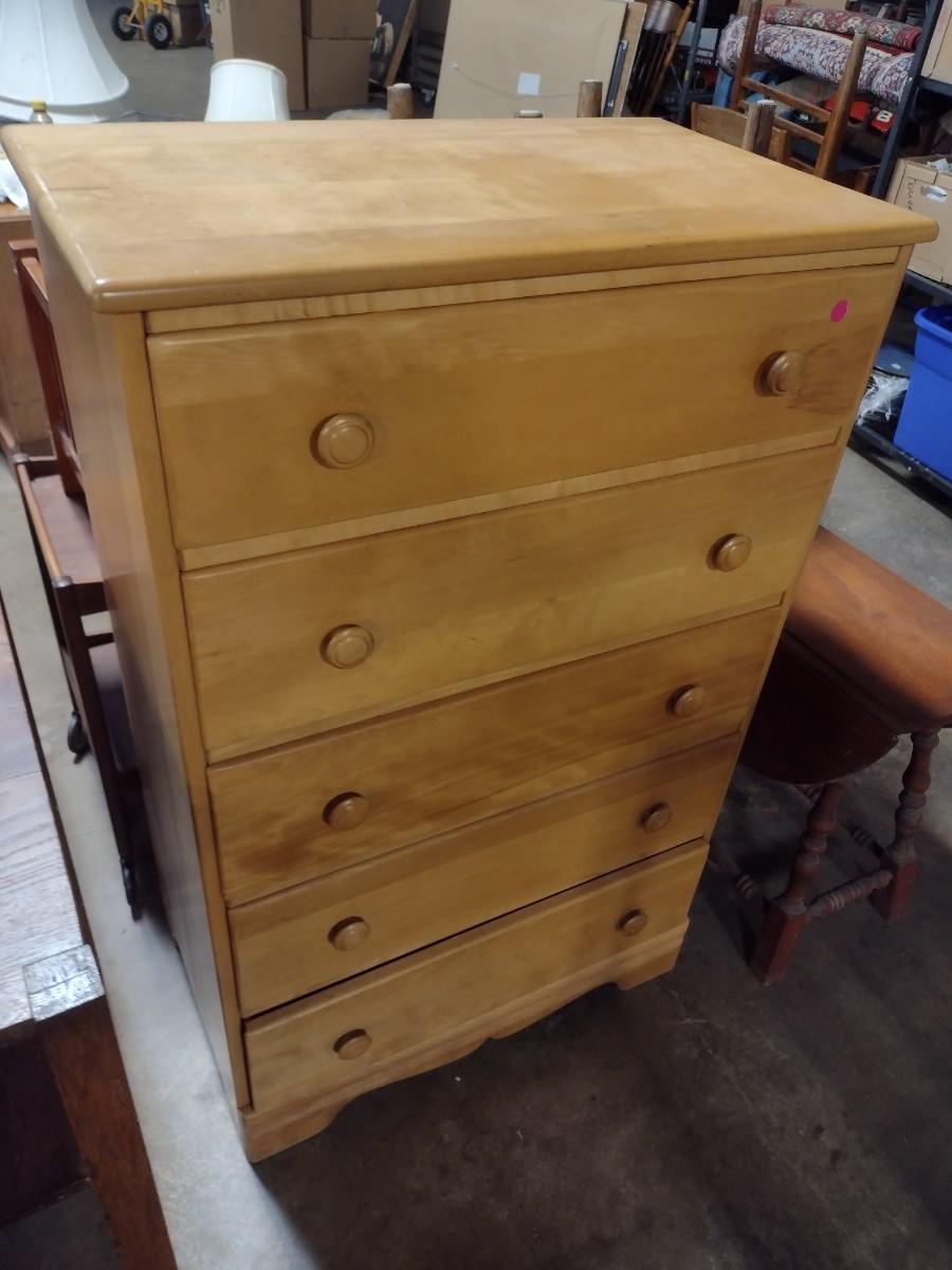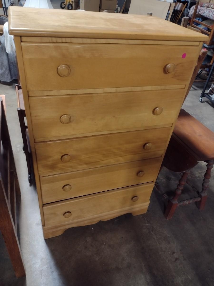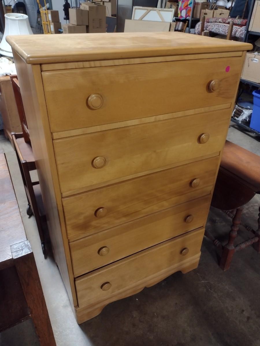 Vintage Solid Maple Five Drawer Dresser