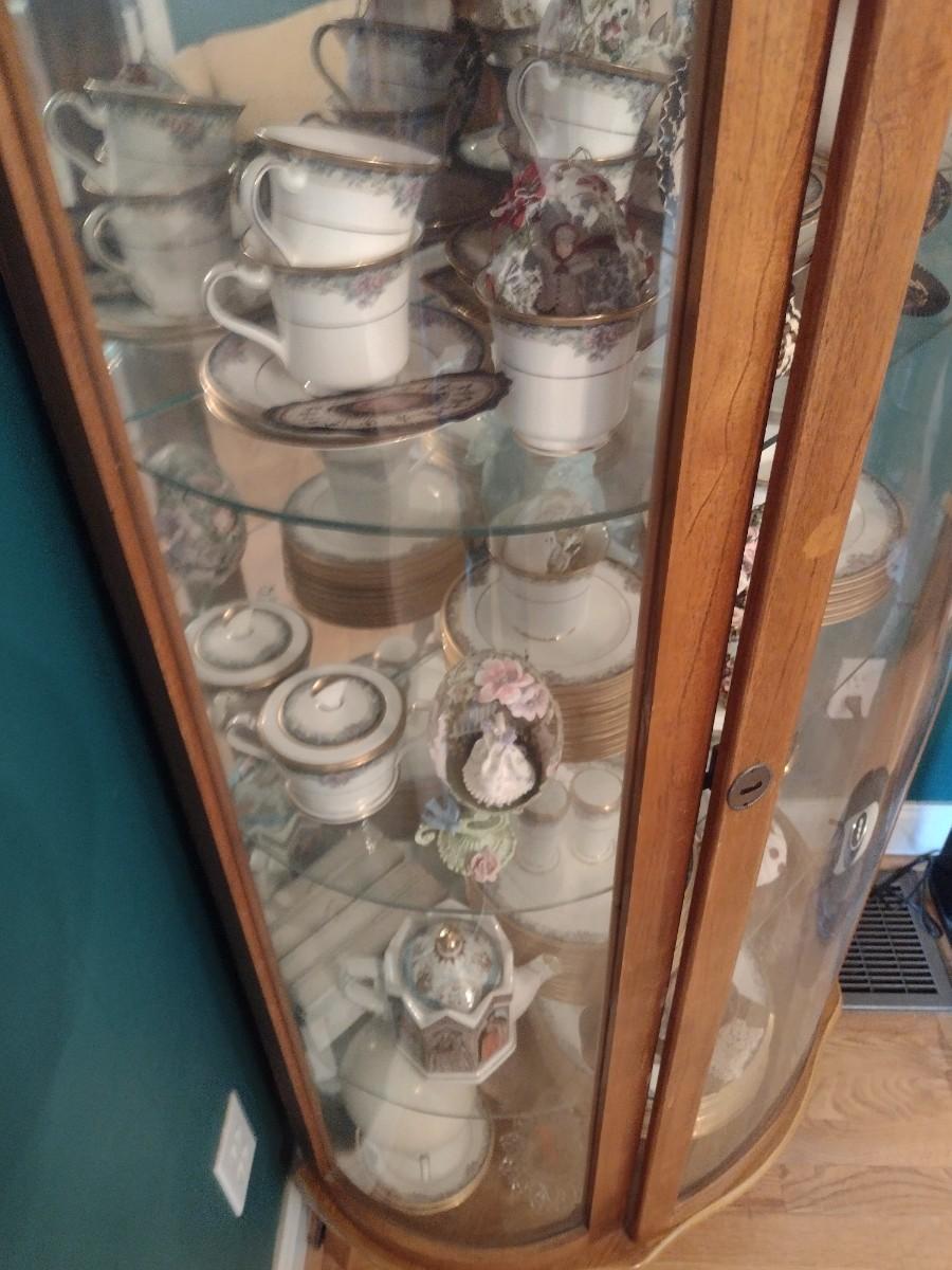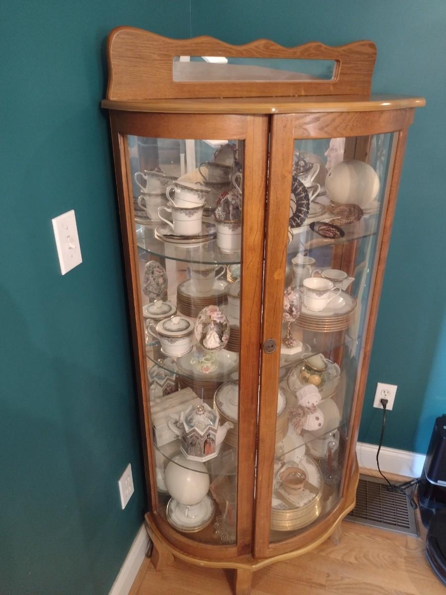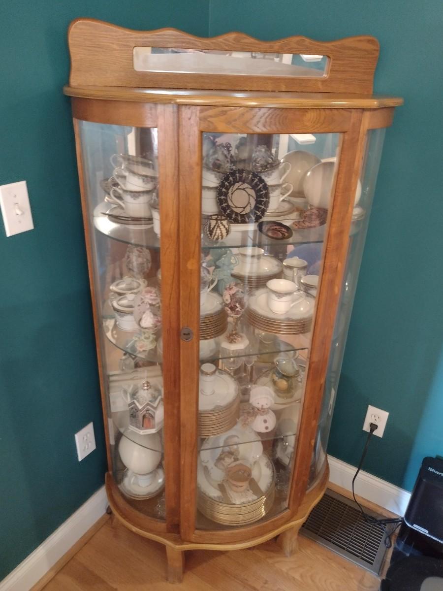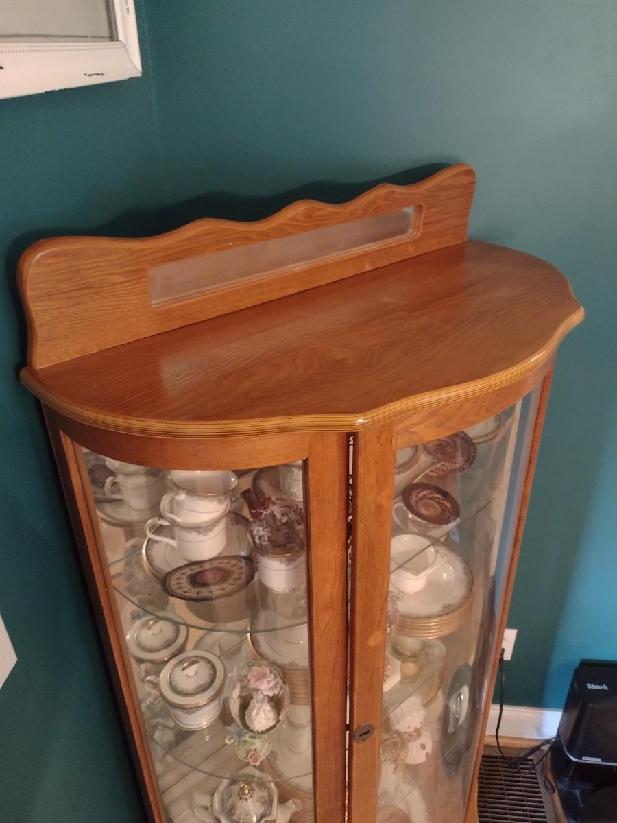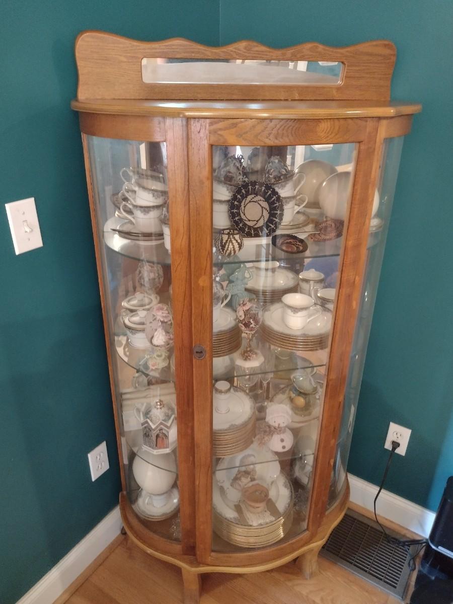 Vintage Solid Oak Bowfront Curio Cabinet (No Contents)