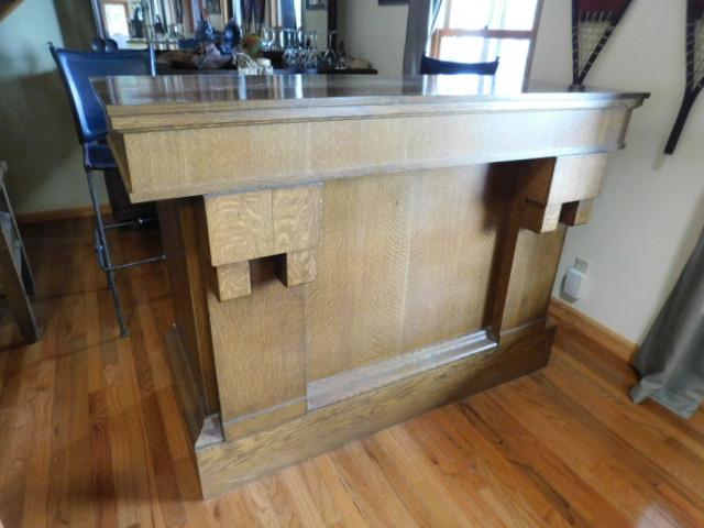 Vintage Solid Oak Frank Lloyd Wright Design Front Bar 60"x25"x44"