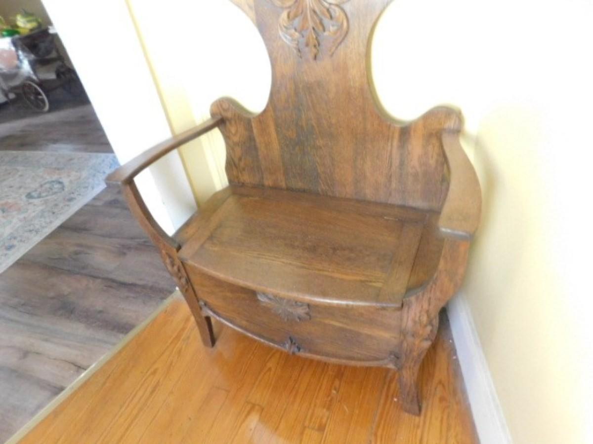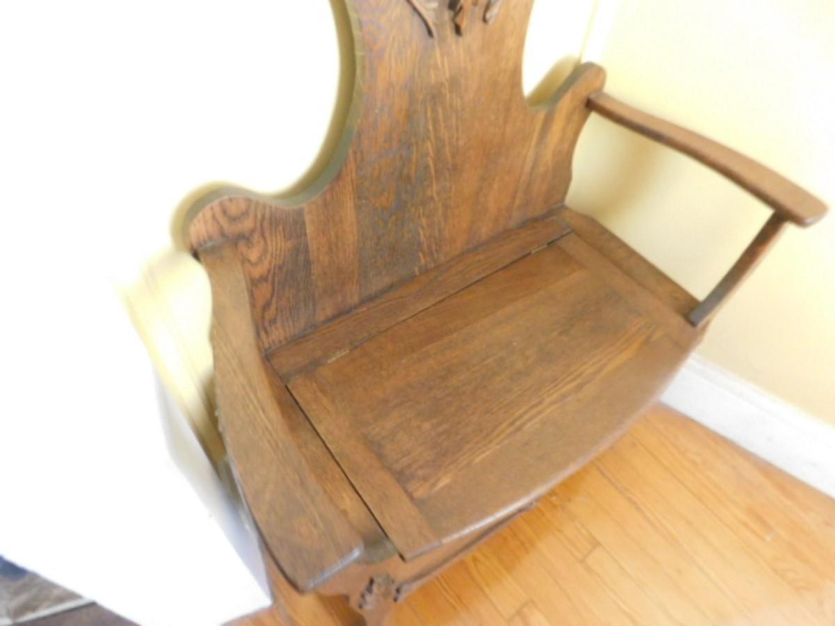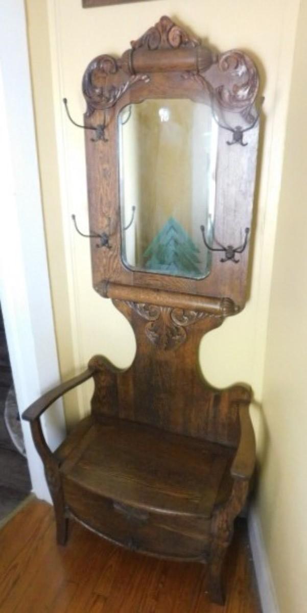 Vintage Solid Oak Hall Tree Bench with Mirror 14"x72"