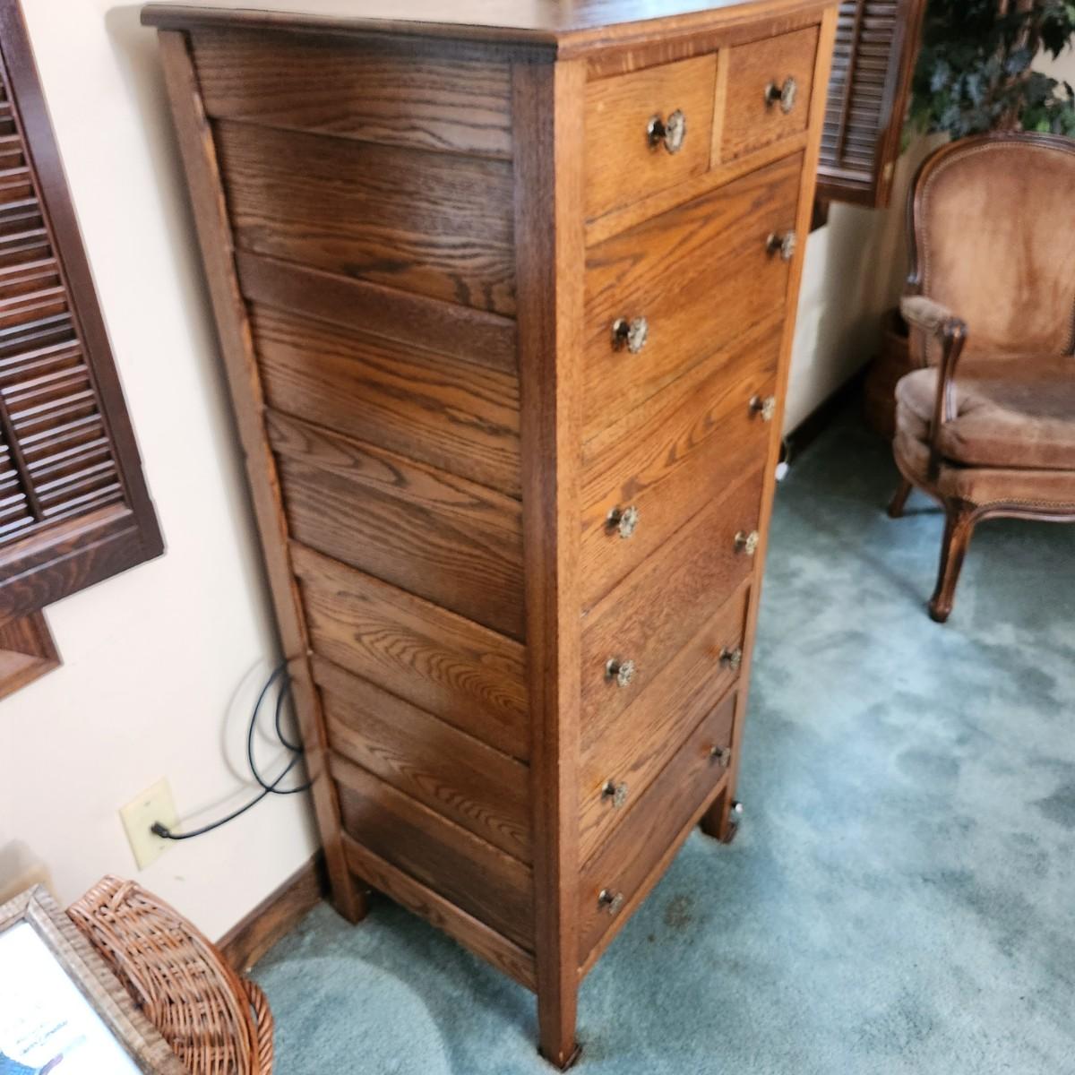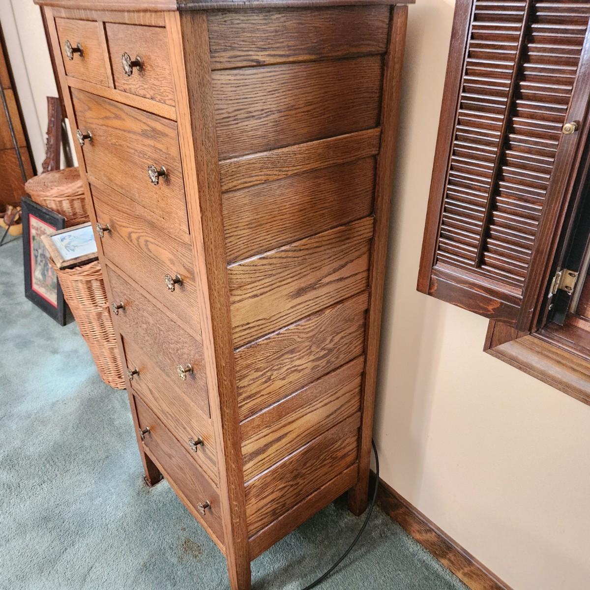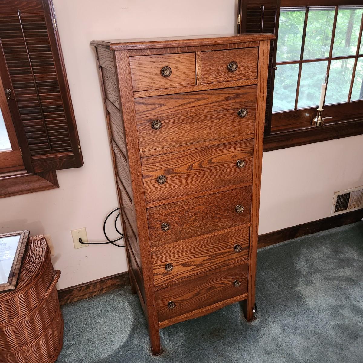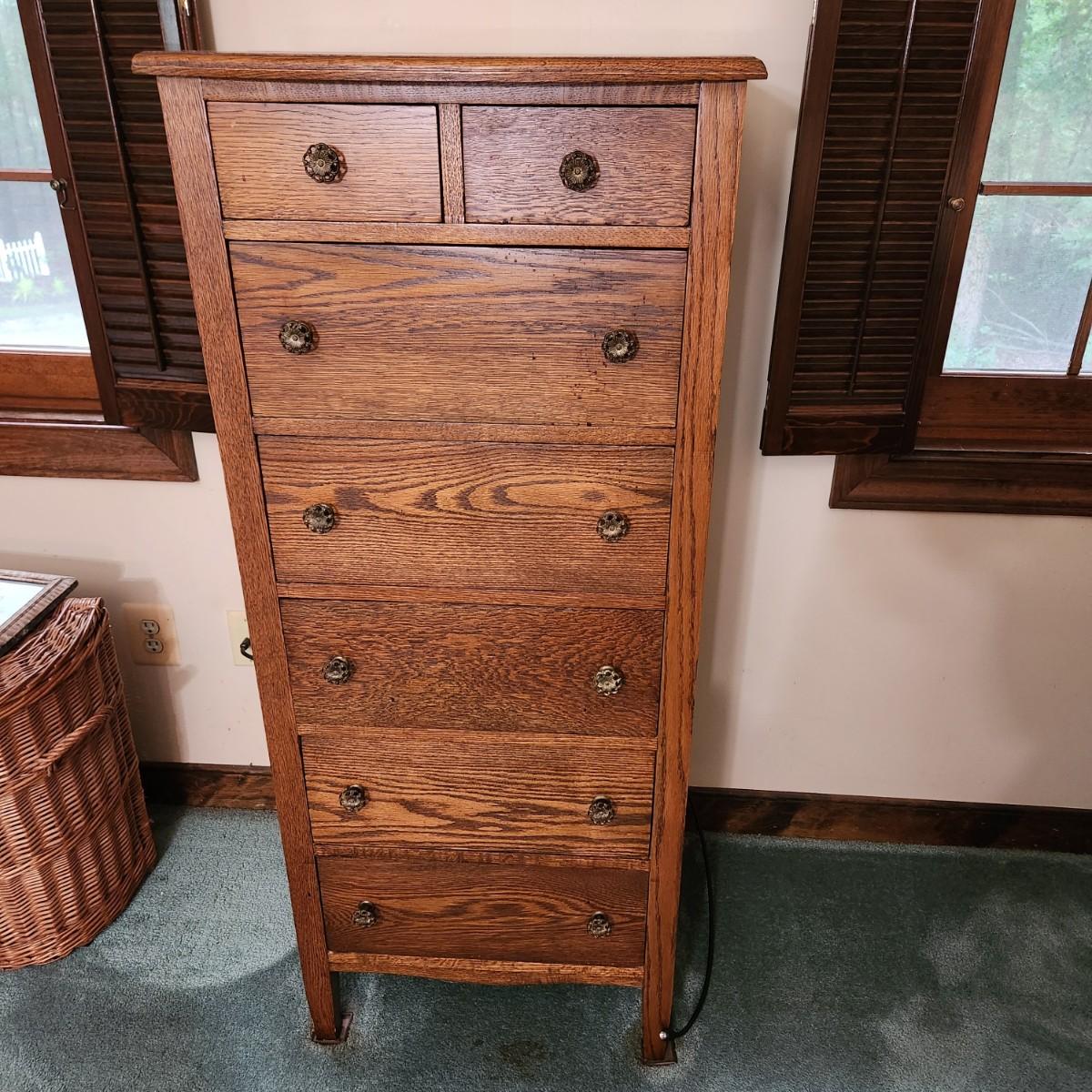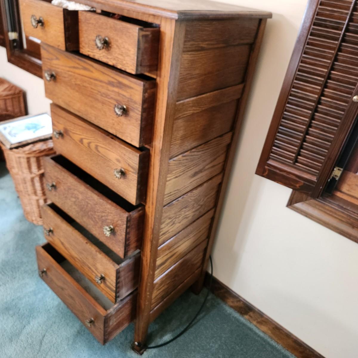 Vintage Solid Oak Narrow 2 over 5 Chest of Drawers 22x19x51