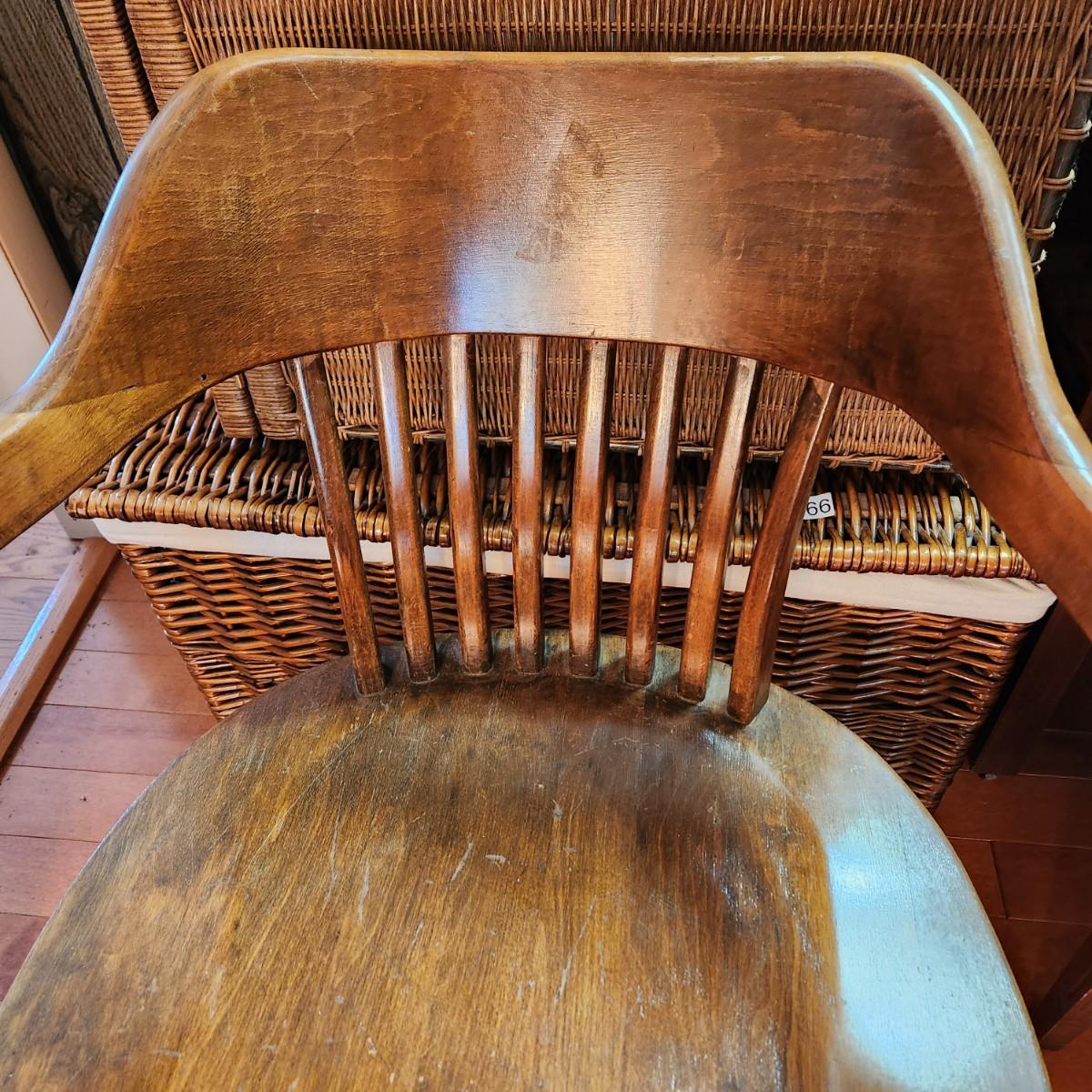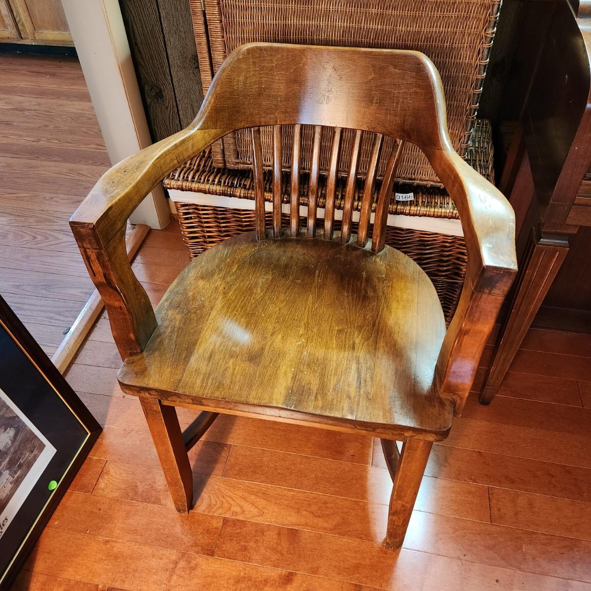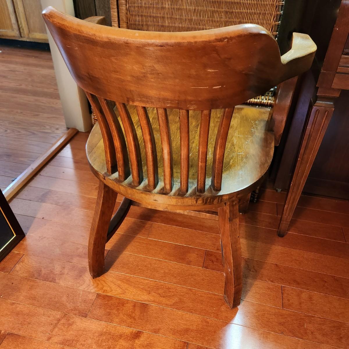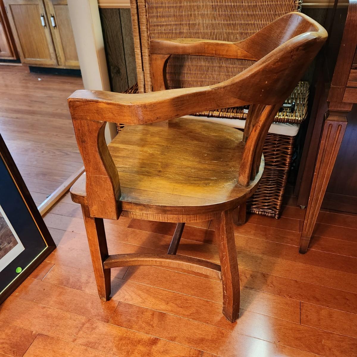 Vintage Solid Oak Wood Banker Lawyer Jury Office Desk Chair