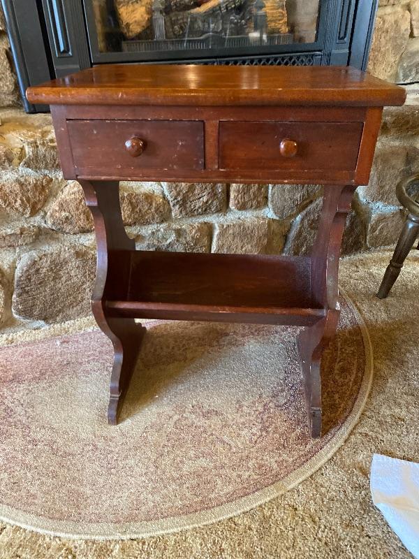 Vintage Solid Wood 2 Drawer Magazine End Table Bedside Table