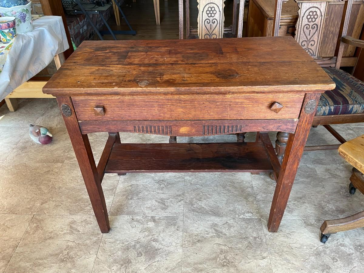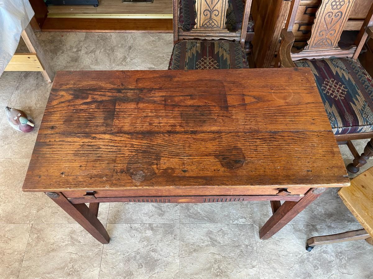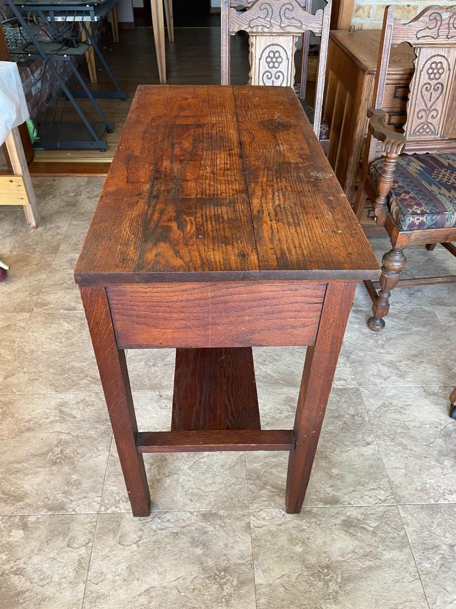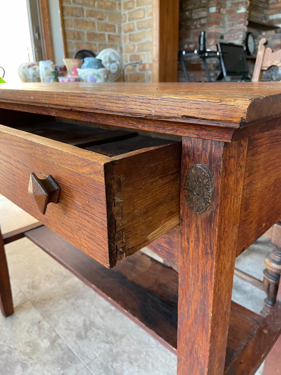 This can be used for art and crafts or as a desk. Considering the age, it's in nice condition.