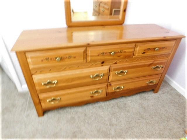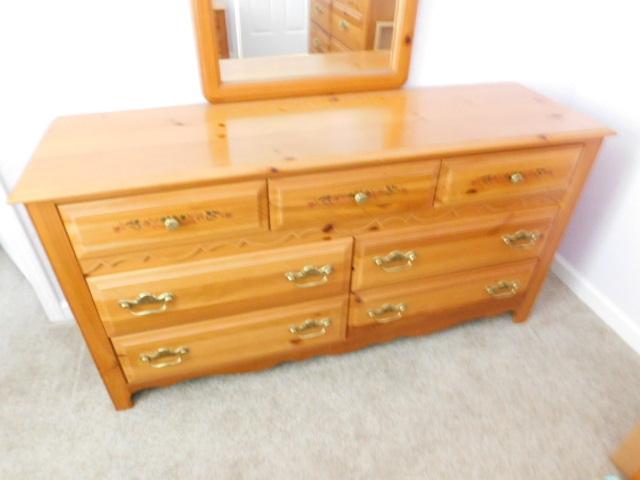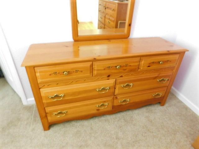 Vintage Solid Wood Broyhill Three over Four Stretch Dresser with Mirror 60"x18"x31"