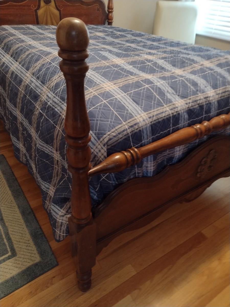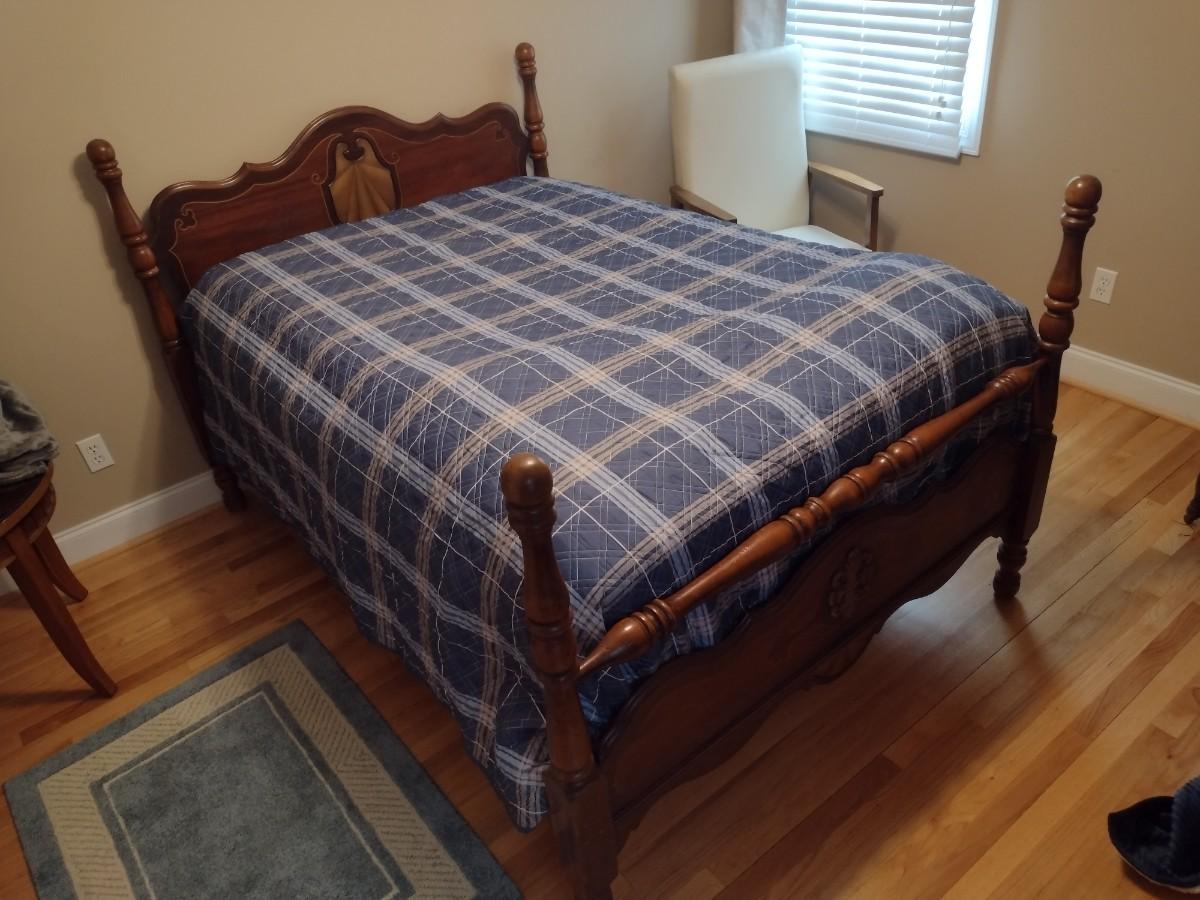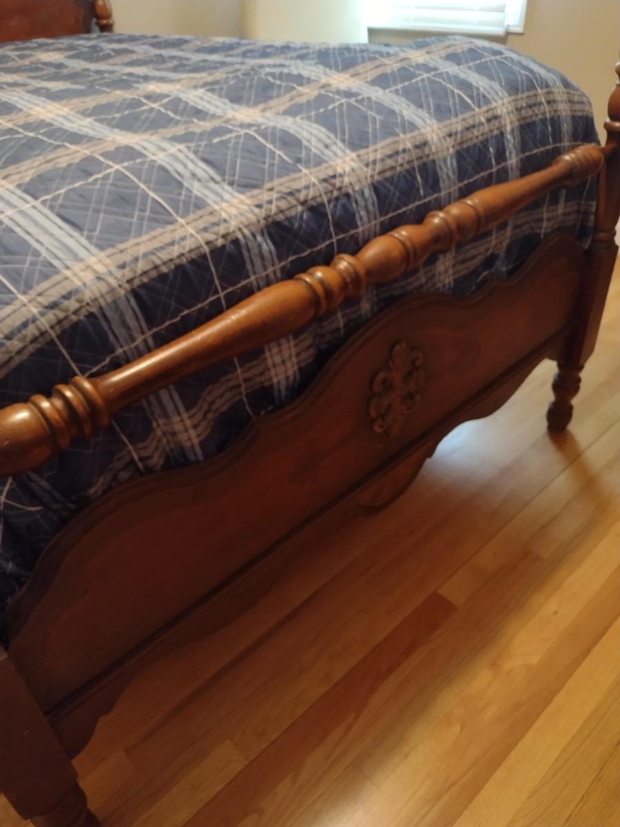 Vintage Solid Wood Carved Front Full-Sized Head and Foot Board Bed Frame with Mattress Set (No Bedding)