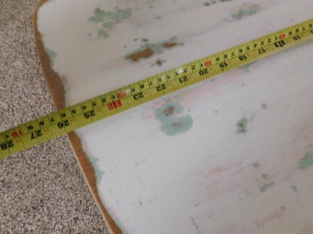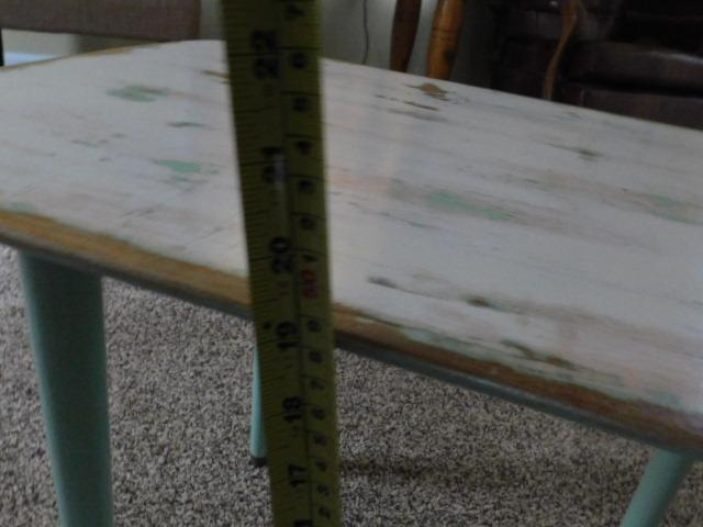 Vintage Solid Wood Chalkware Finish Side Table 26"x17"x19" has good weight. Very appealing to look at.