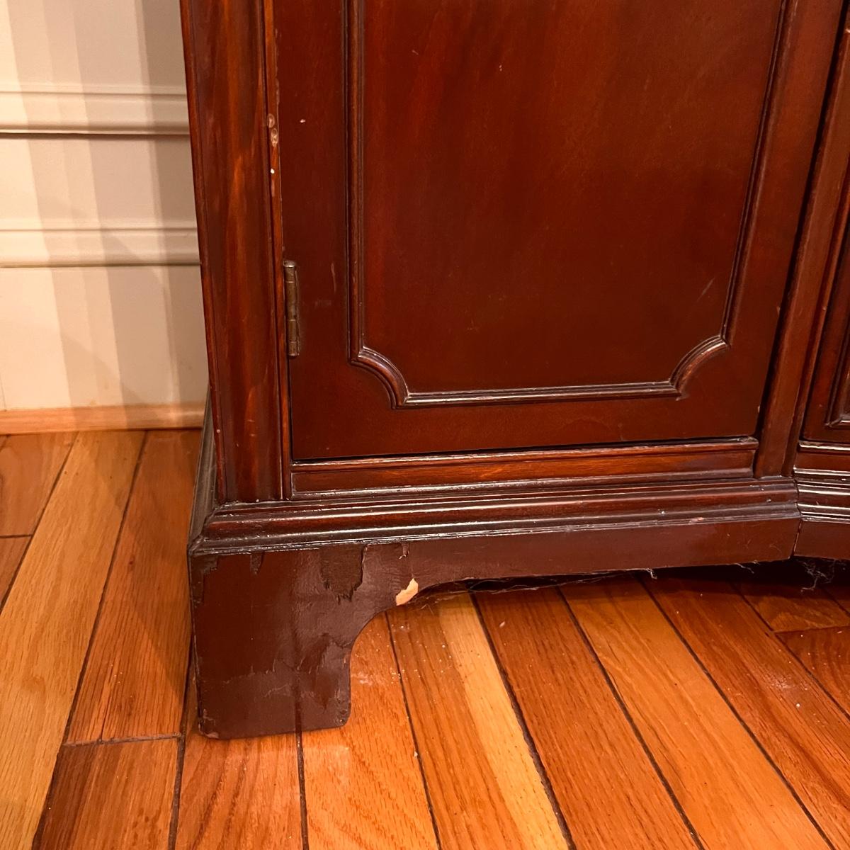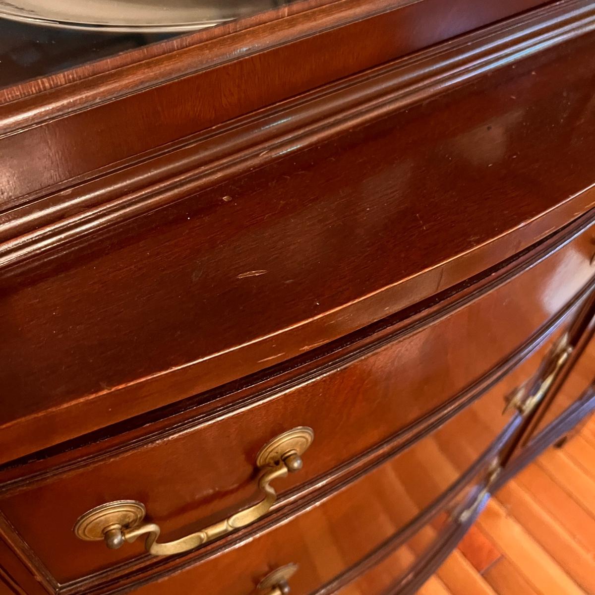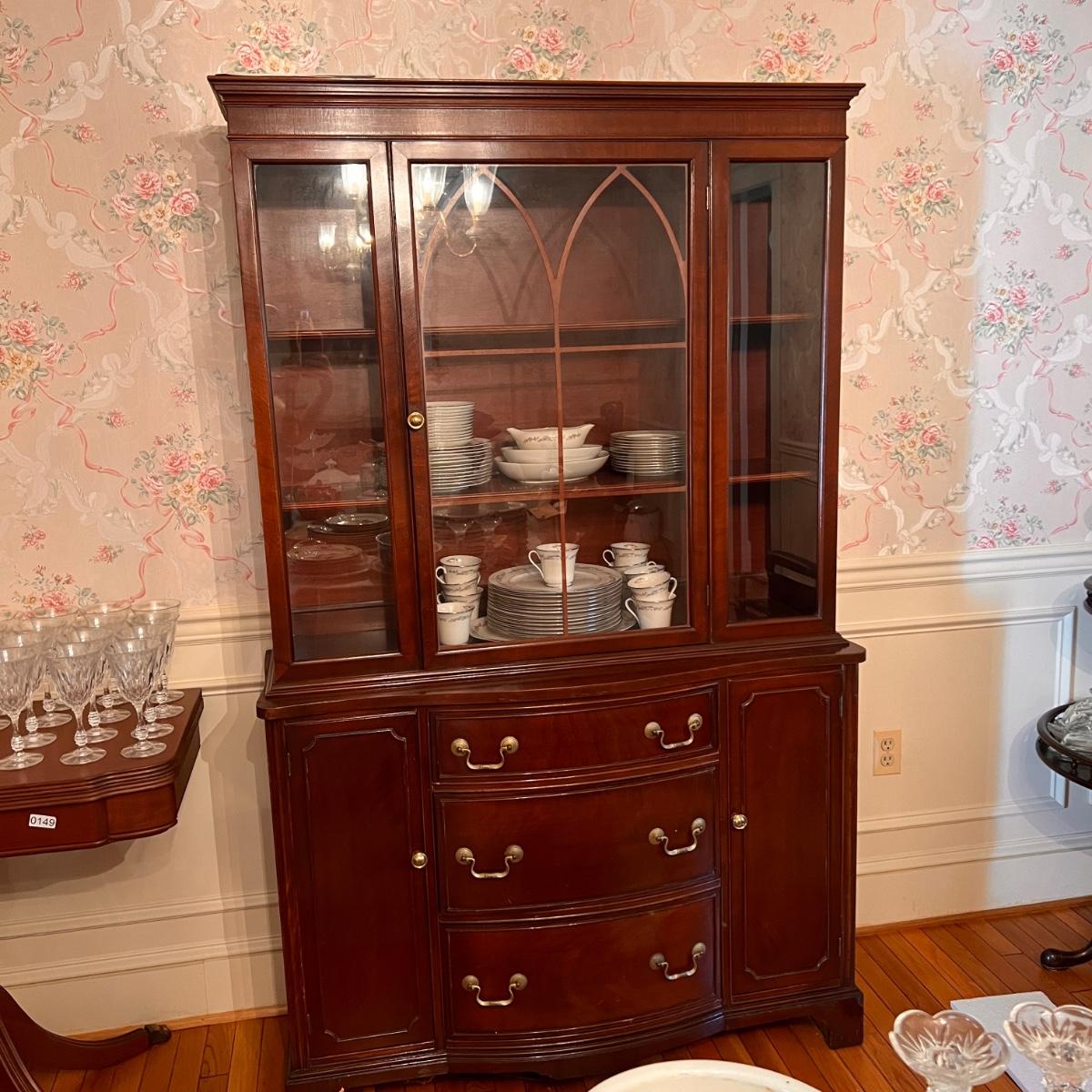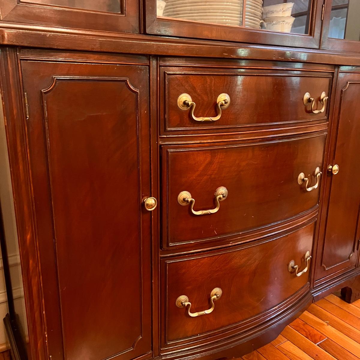 Duncan Phyfe style mahogany china cabinet from the 1940's. See pics for condition. Matching buffet in lot #211