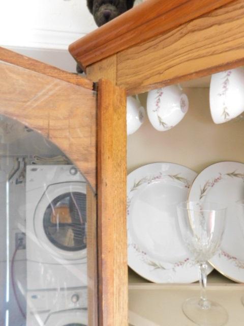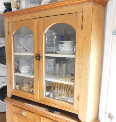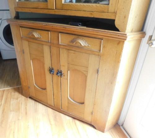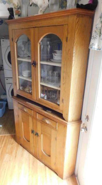 Vintage Solid Wood Corner Two piece Cupboard with China Hutch Top