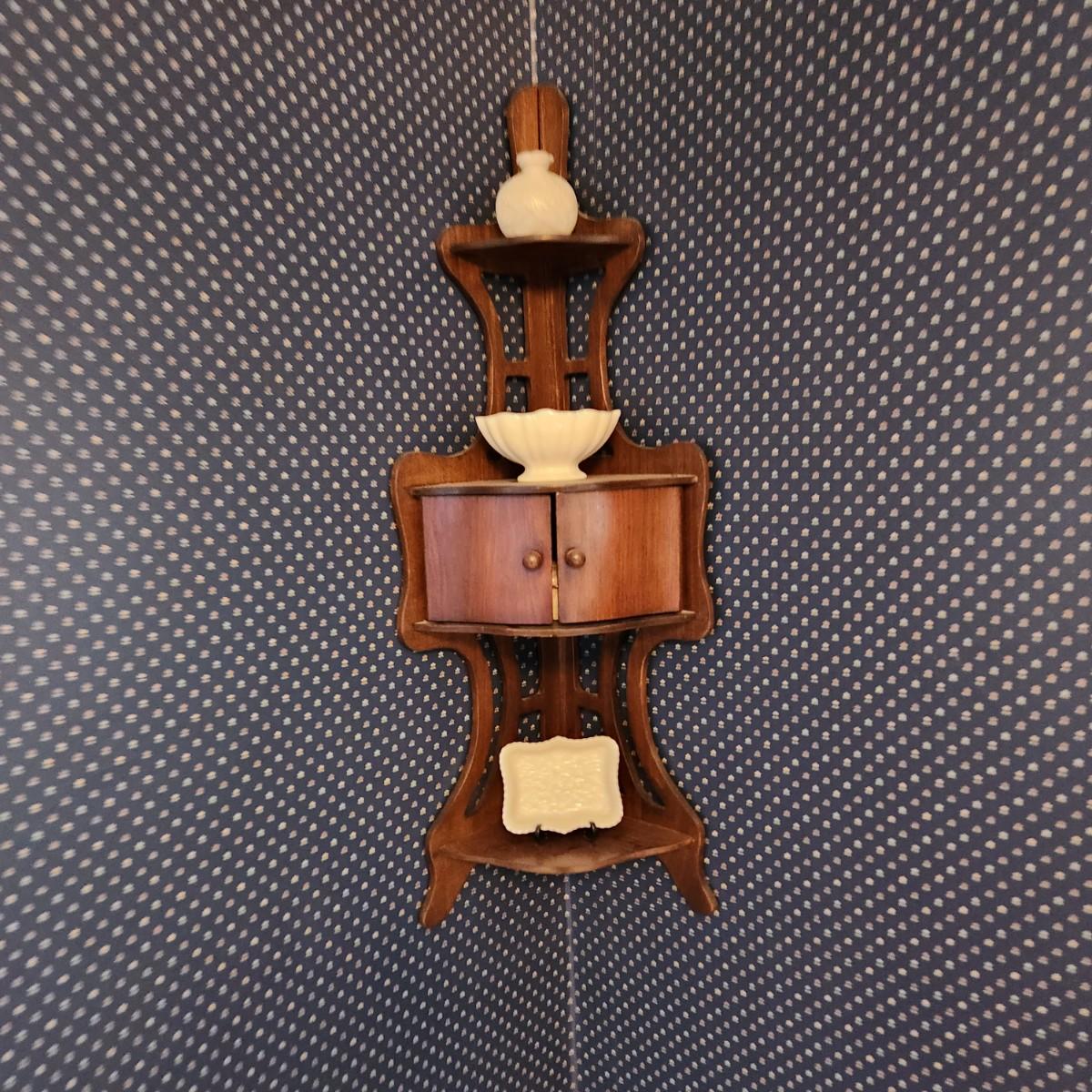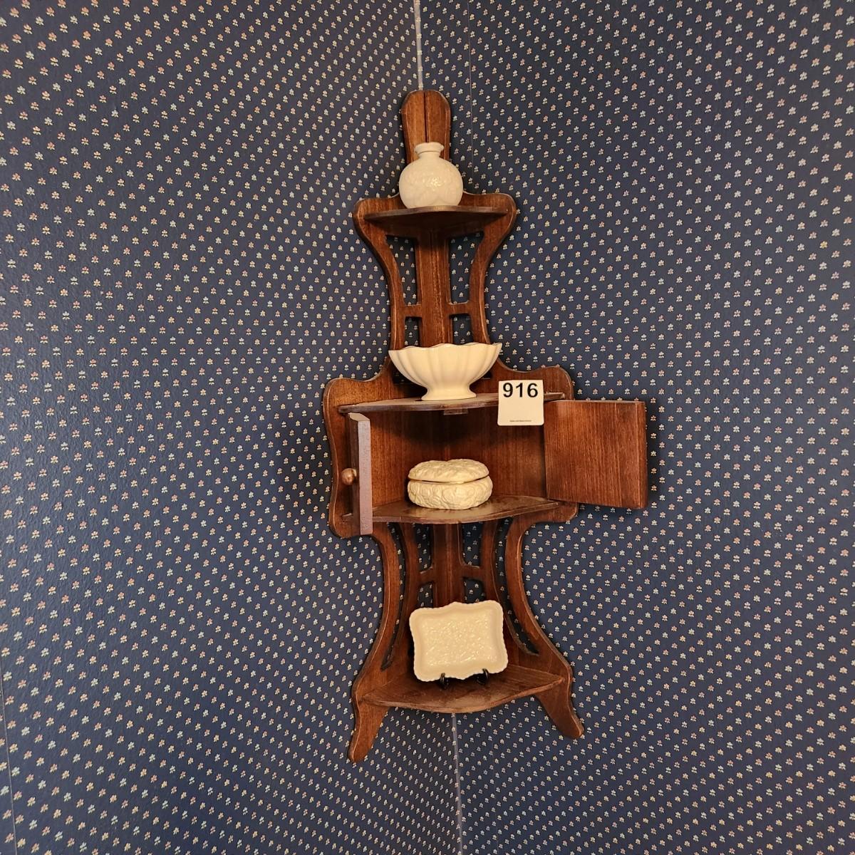Vintage Solid Wood Corner Wall Shelf with 4 Lenox China