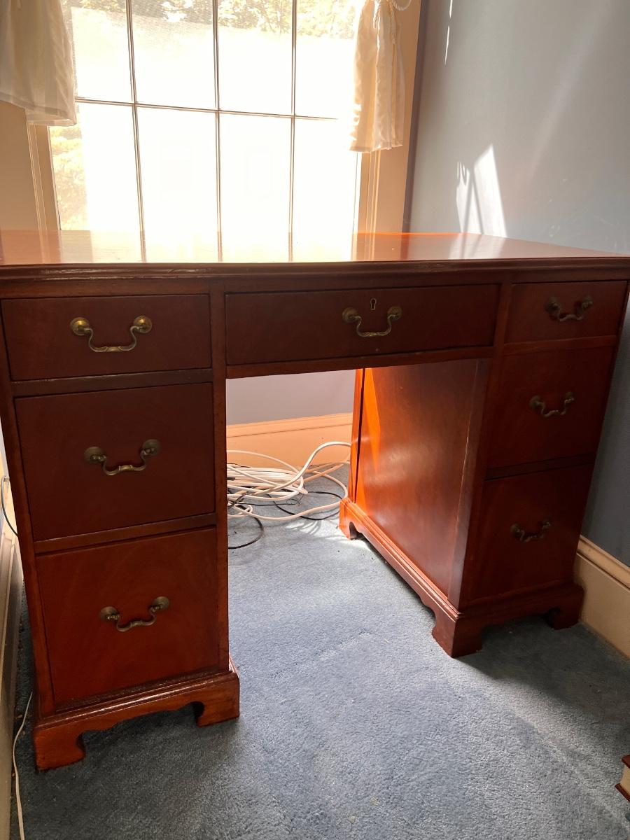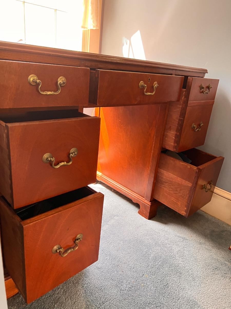 3 left side drawers, 1 middle drawer, 2 right side drawers. Shows some age/wear. See all pictures.
