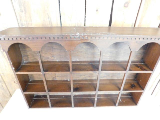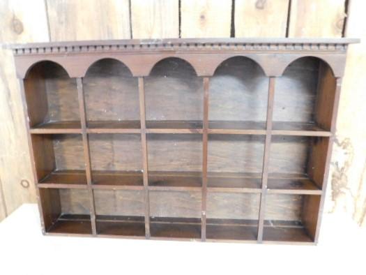 Vintage Solid Wood Dish or Demitasse Wall Display 33x5"x23" has some wear and scratches to the finish