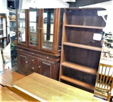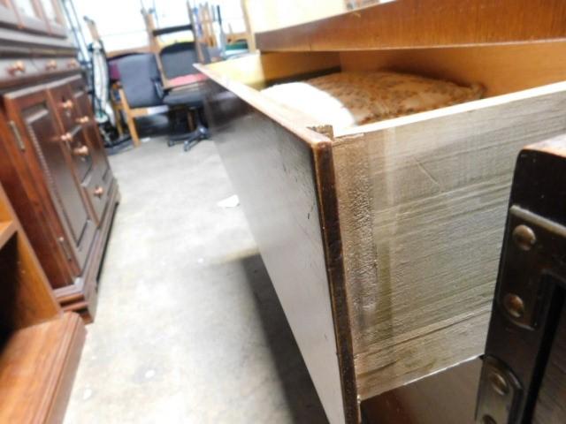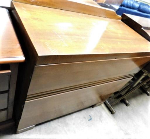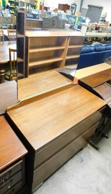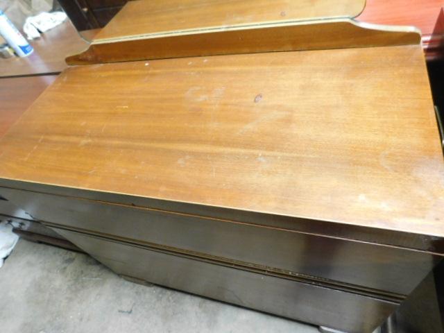 Vintage Solid Wood Double Drawer Dresser with Top Mirror mirror is pictured but is reflecting other furniture. It is an unframed mirror. This dresser has a really nice look...some wear to finish as shown