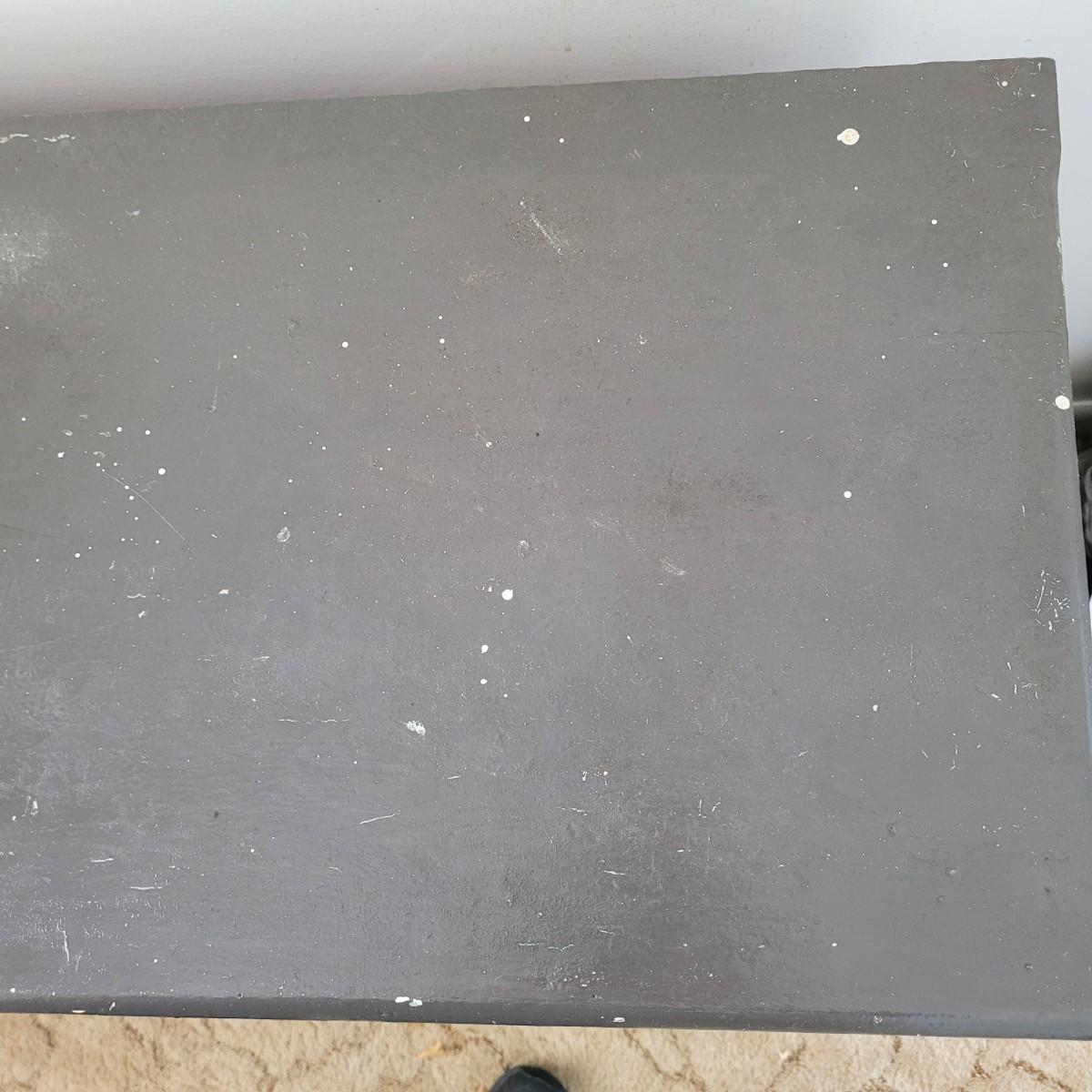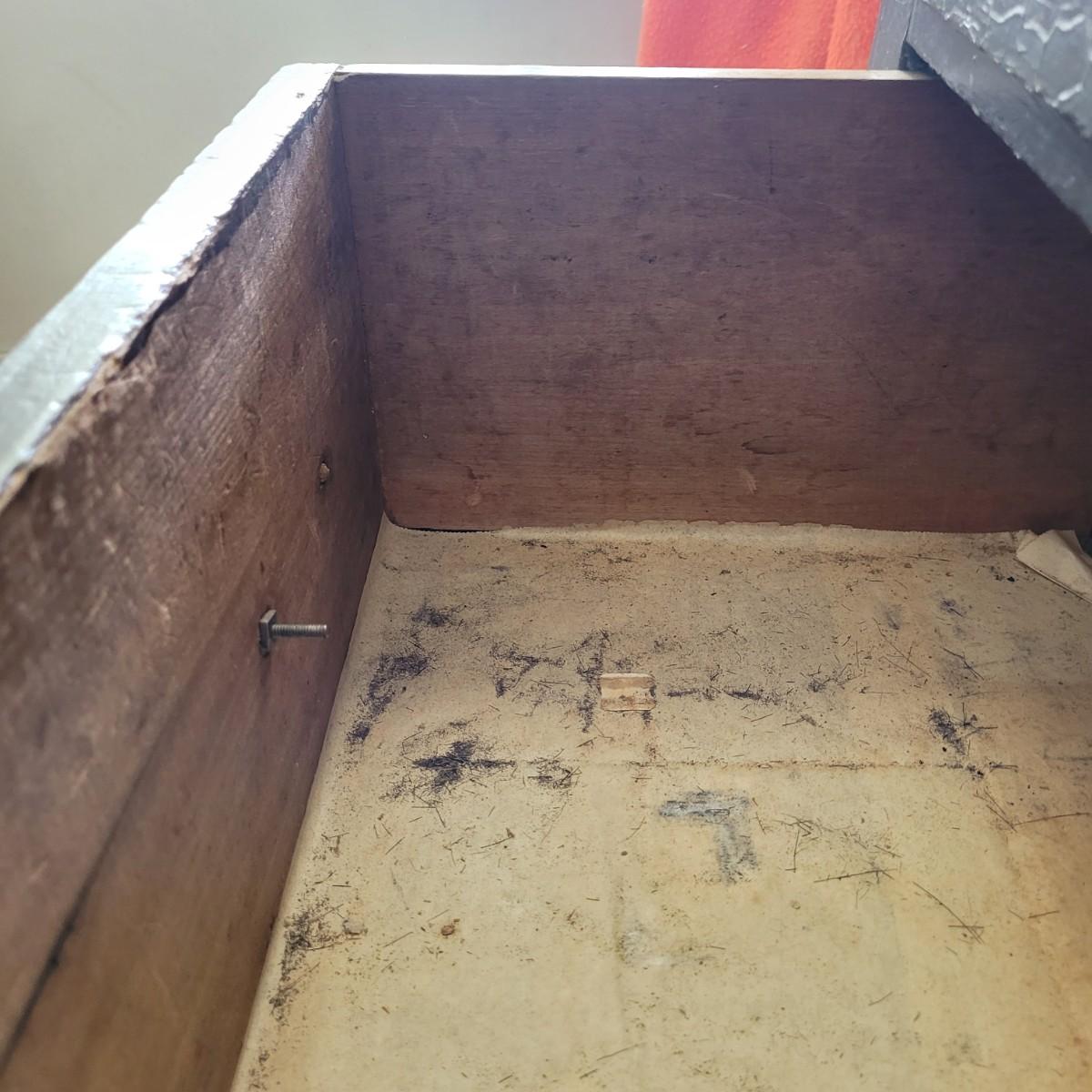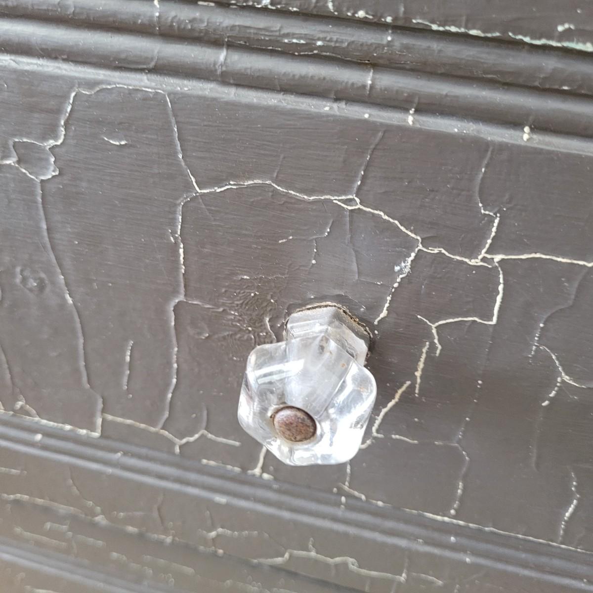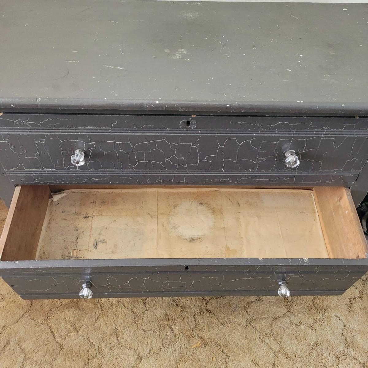 This lot includes one solid wood dresser. This dresser is painted gray and has three sliding drawers. The drawers feature two acrylic and metal handles each. The drawers are a bit stiff. The piece measures 38" x 17" x 33"H. Has chipping paint that appears to be a natural distressing.