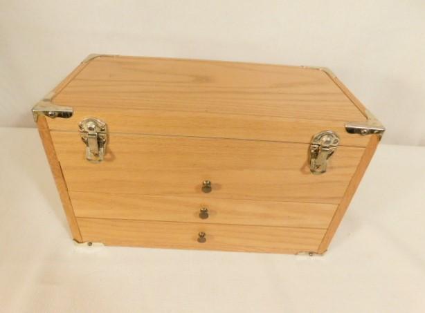 Vintage Solid Wood Felt Lined Storage Box 15"x7"x9"