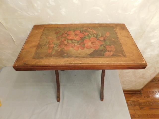 Vintage Solid Wood Fold Table with Picture In-lay 25"x15"x20"