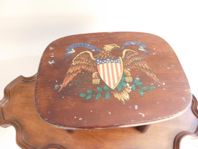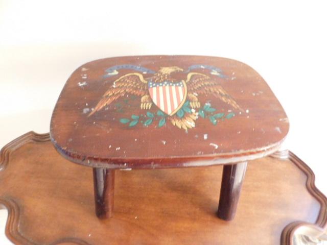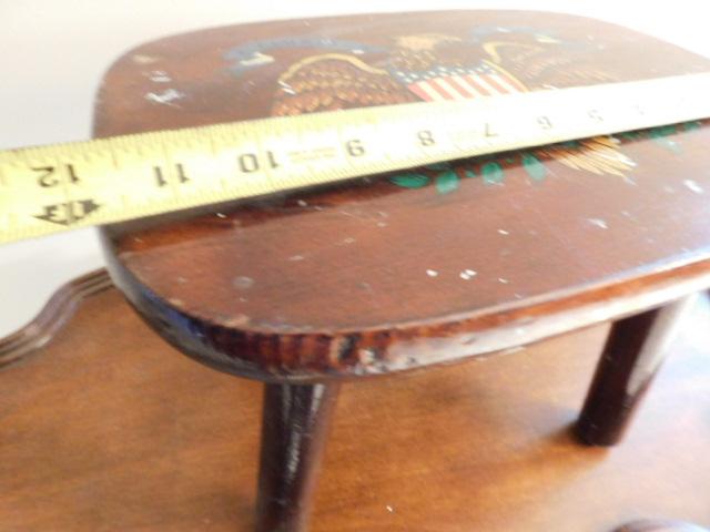 Vintage Solid Wood Foot Stool with American Eagle and Shield 12"x9"