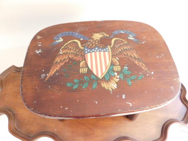 Vintage Solid Wood Foot Stool with American Eagle and Shield 12"x9" has some wear and blemishes to finish