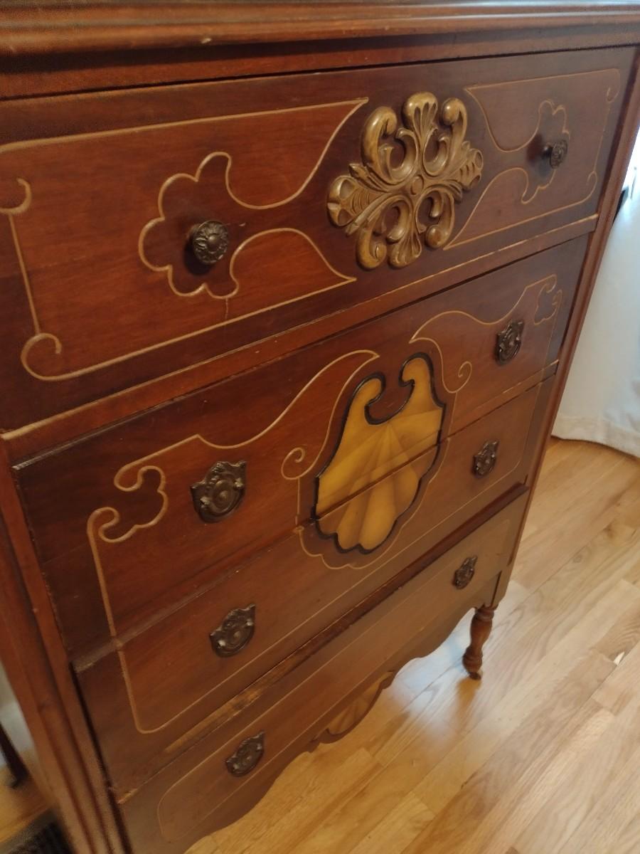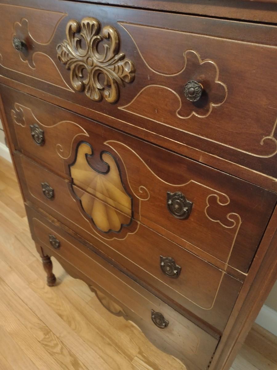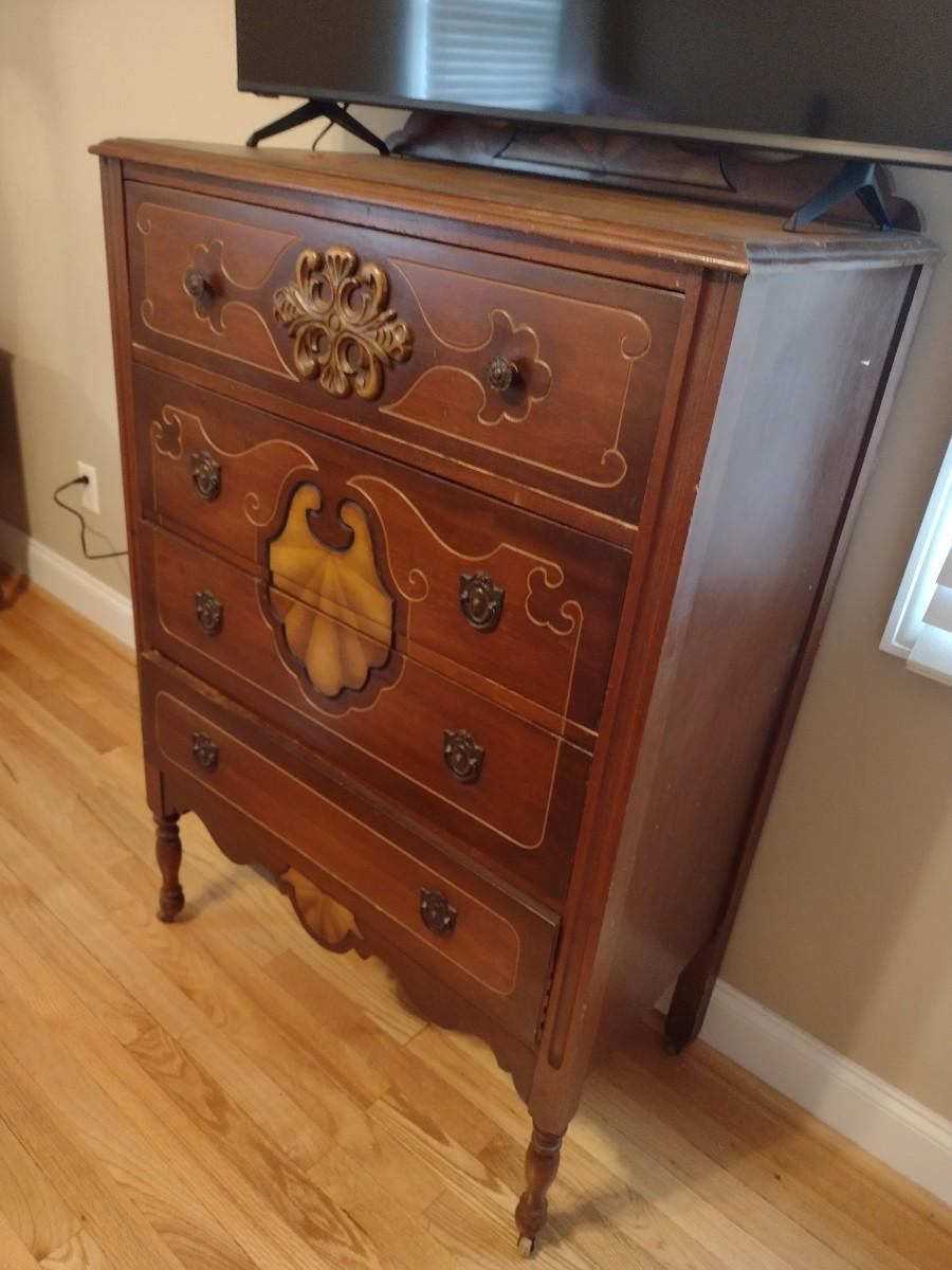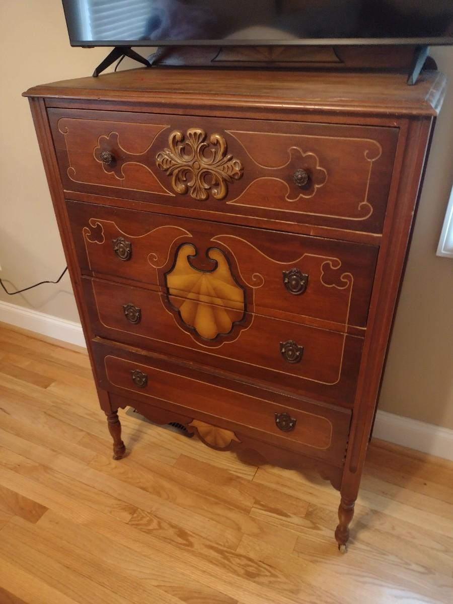 Vintage Solid Wood Four-Drawer Dresser Carved Front