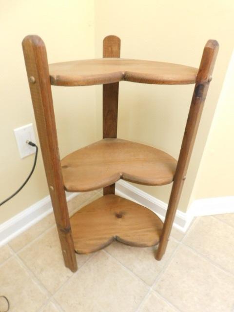 Vintage Solid Wood Heart Shape Shelf Corner Stand