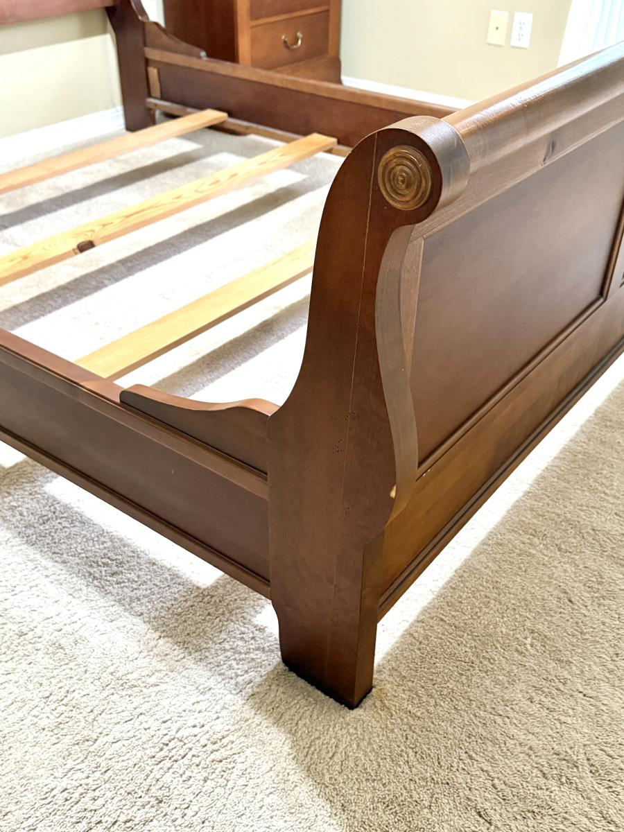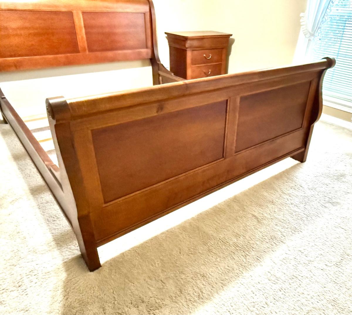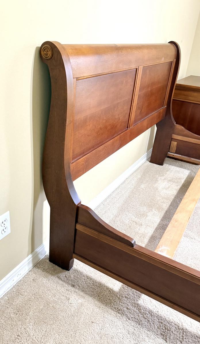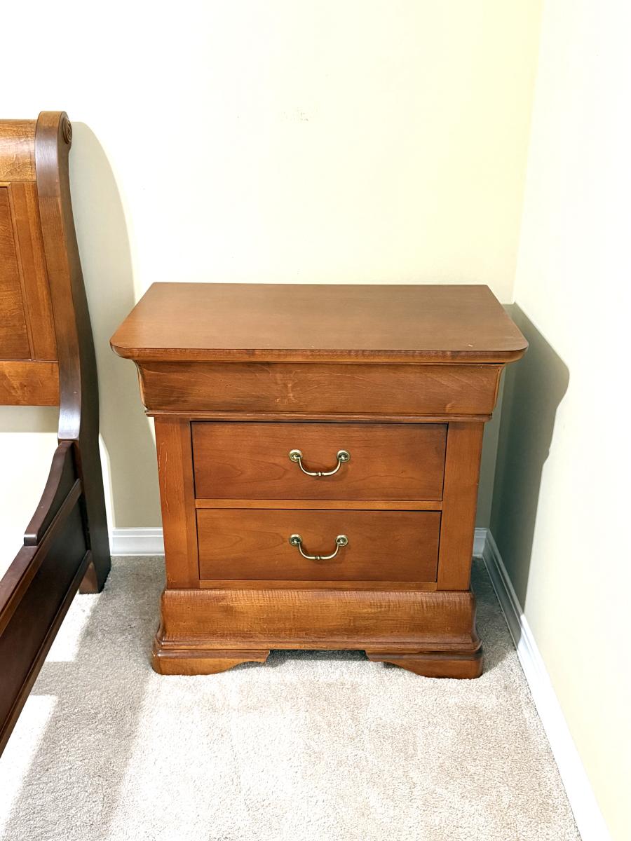 Vintage Solid Wood Hooker Furniture - Full Sized Bed Frame and Side Table