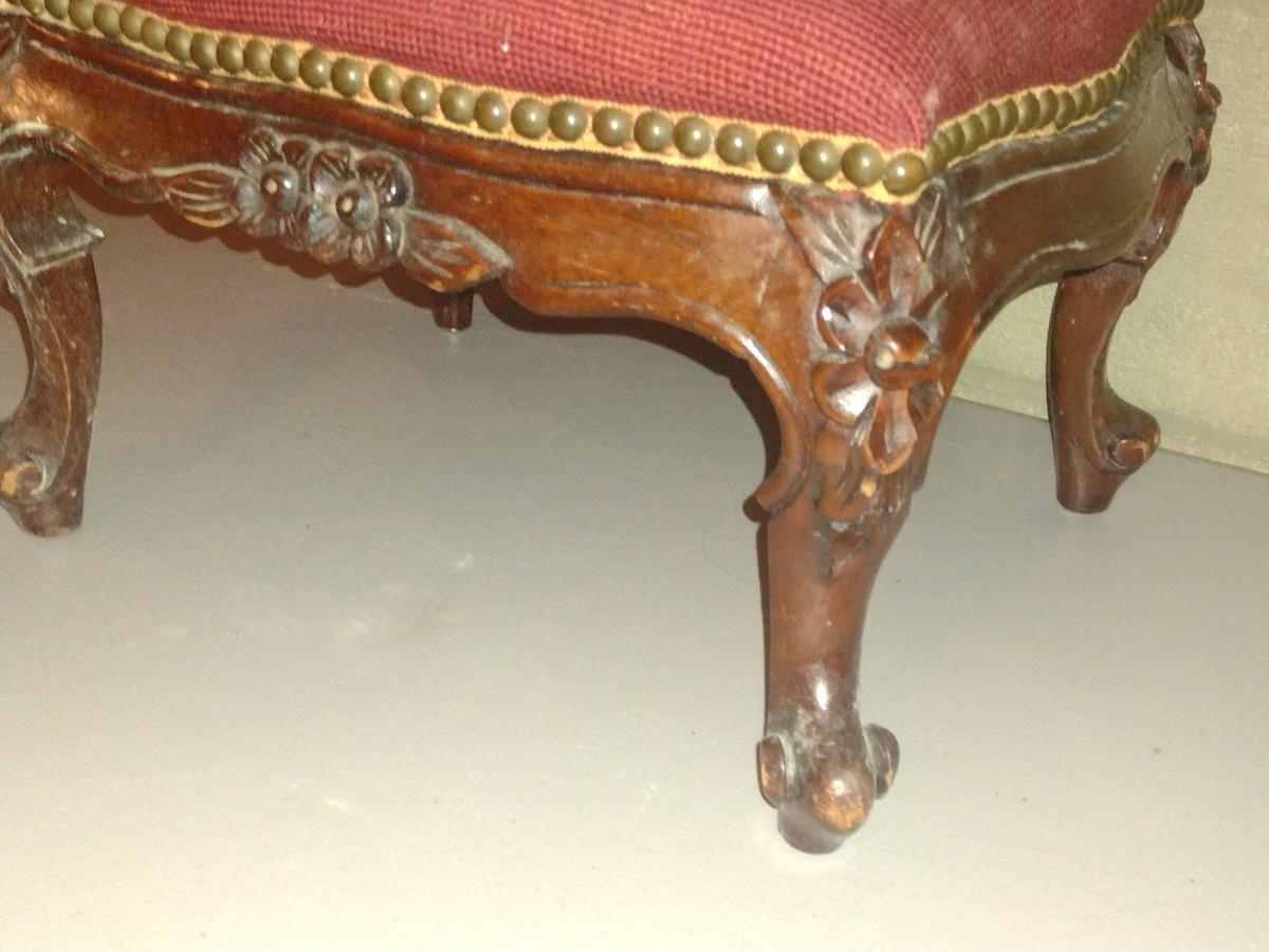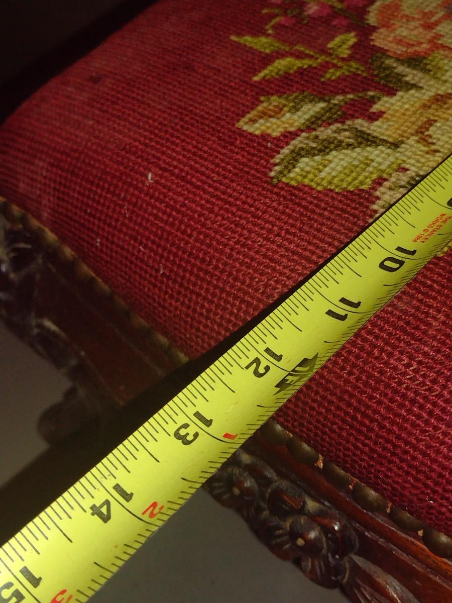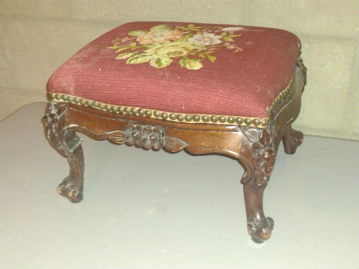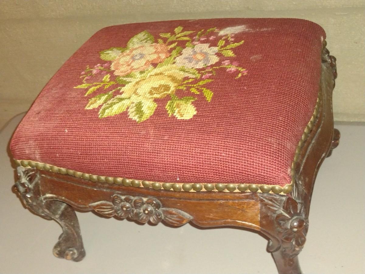 Vintage Solid Wood Mahogany Framed Needlework Foot Stool