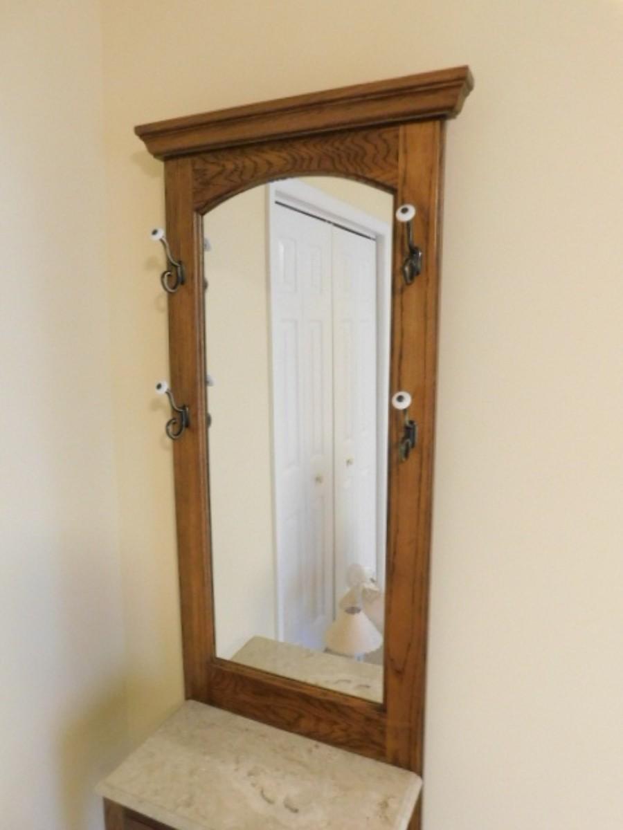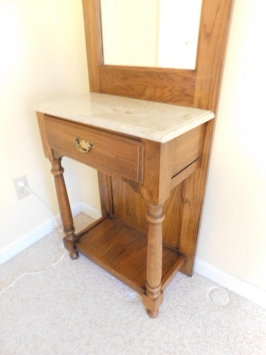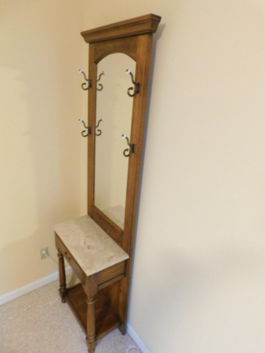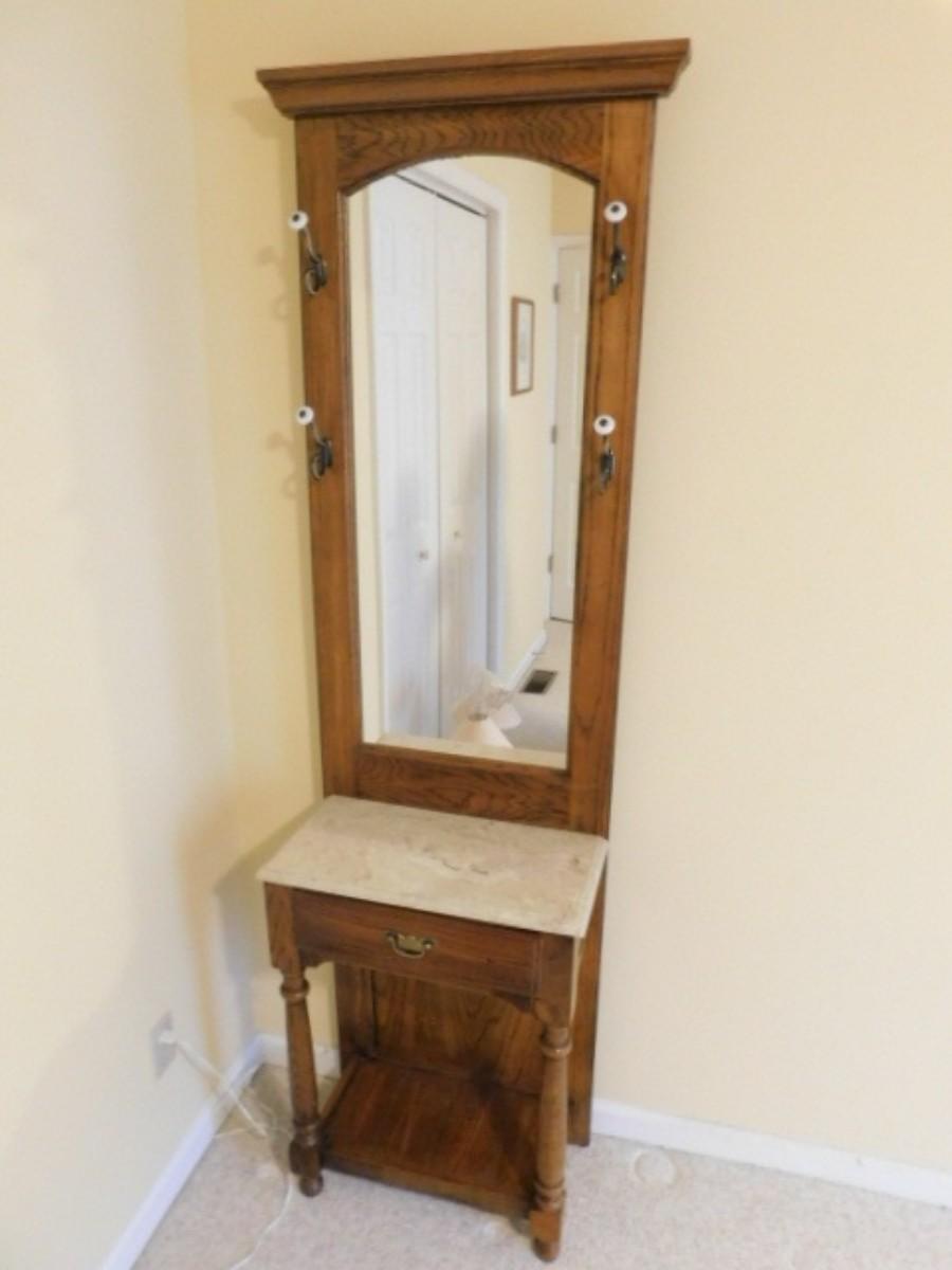 Vintage Solid Wood Mirrored Hall Stand with Marble Tabletop and Single Drawer