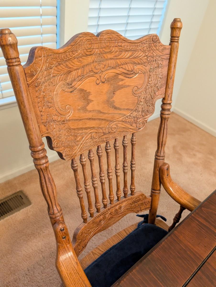 Vintage Solid wood Oak Pedestal Dining Table w/ 5 chairs