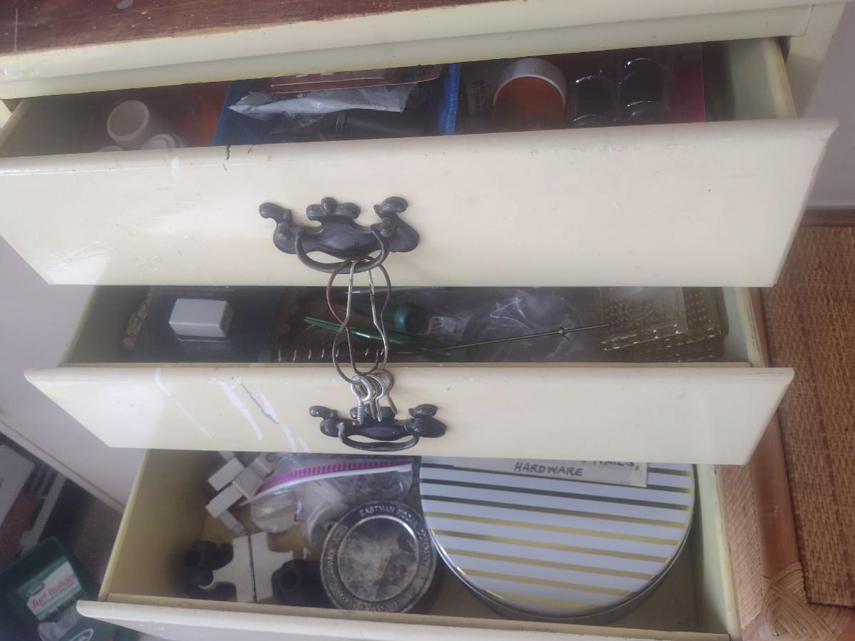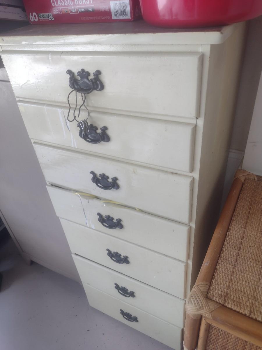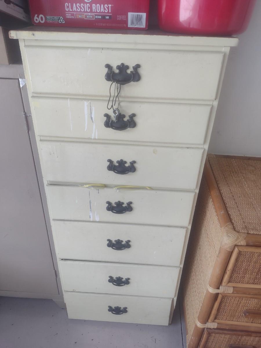 Vintage Solid Wood Painted Multi-Drawer Lingerie Dresser with Contents