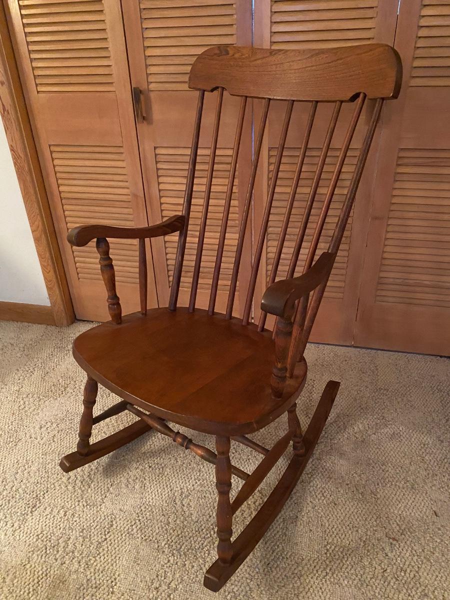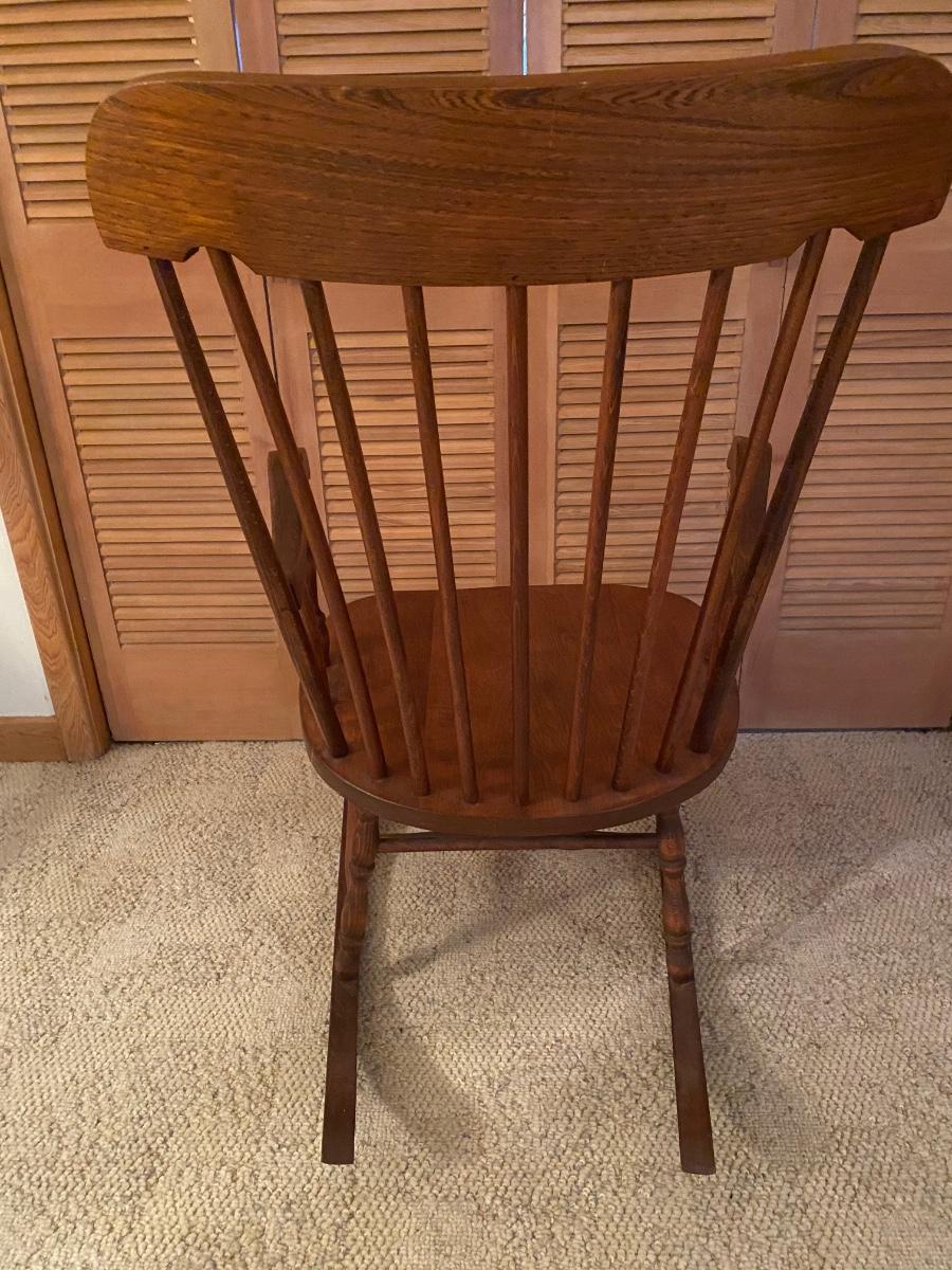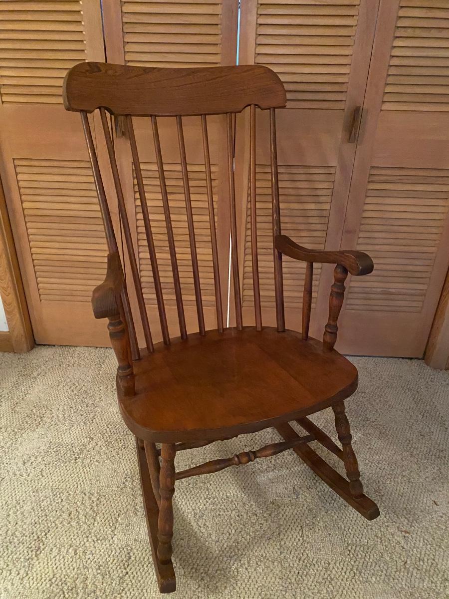 Vintage solid wood rocking chair. Approx 39@h x 23”w. Very good condition