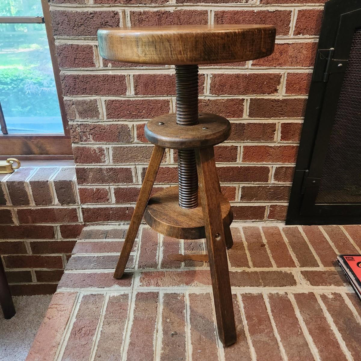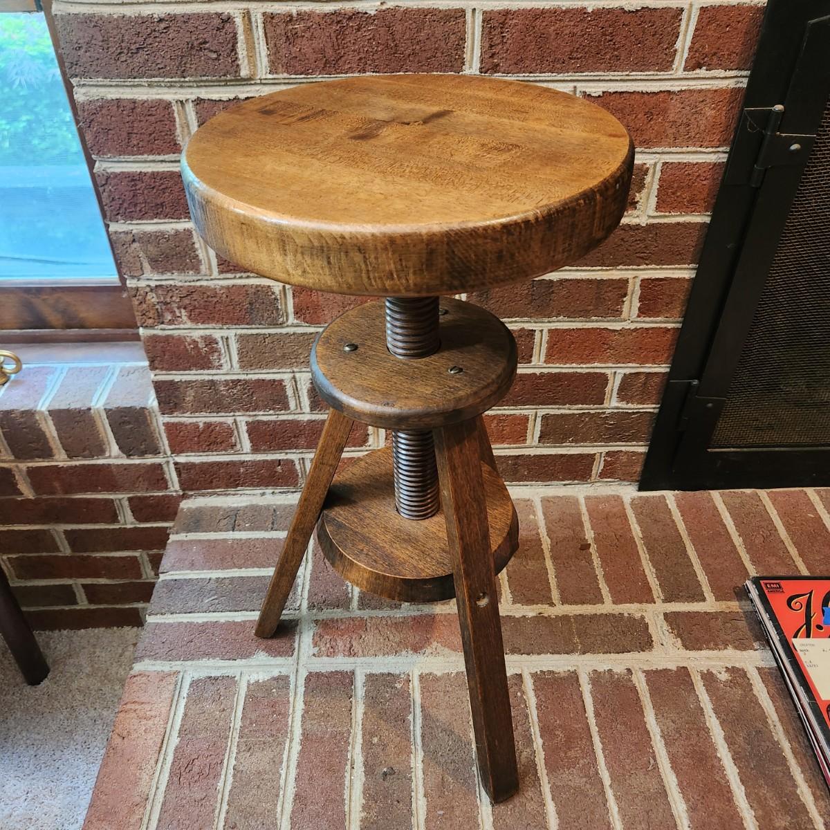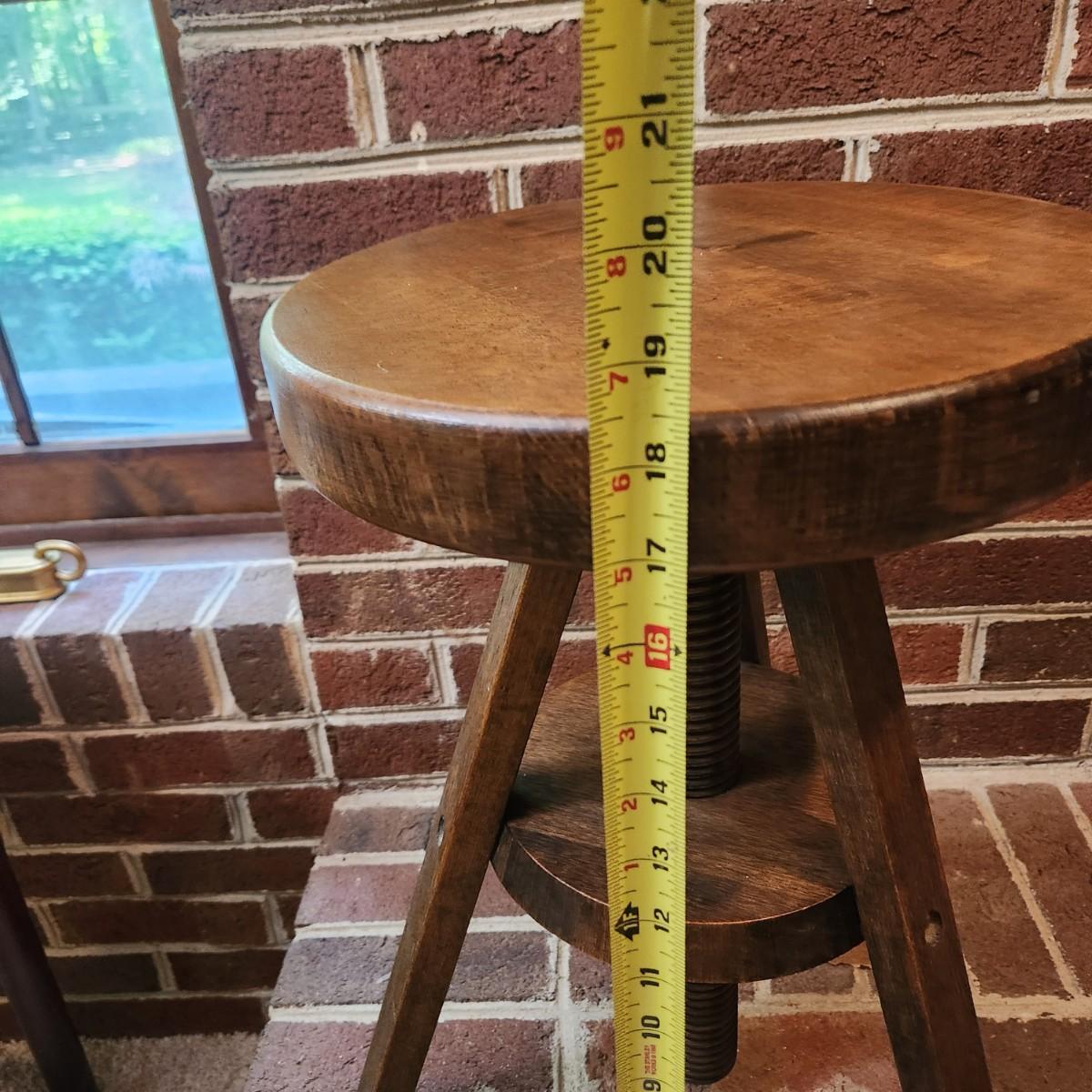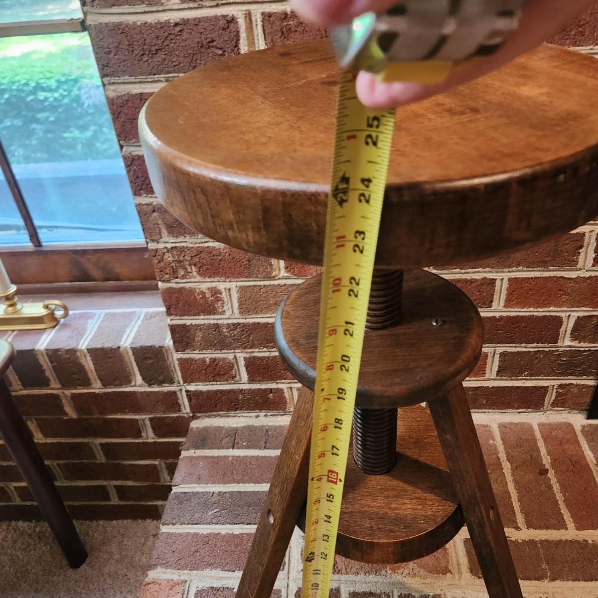 Vintage Solid Wood Round Adjustable Stool 18" to 24" Height