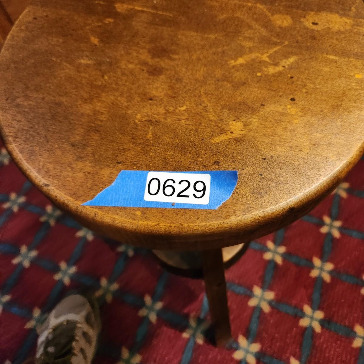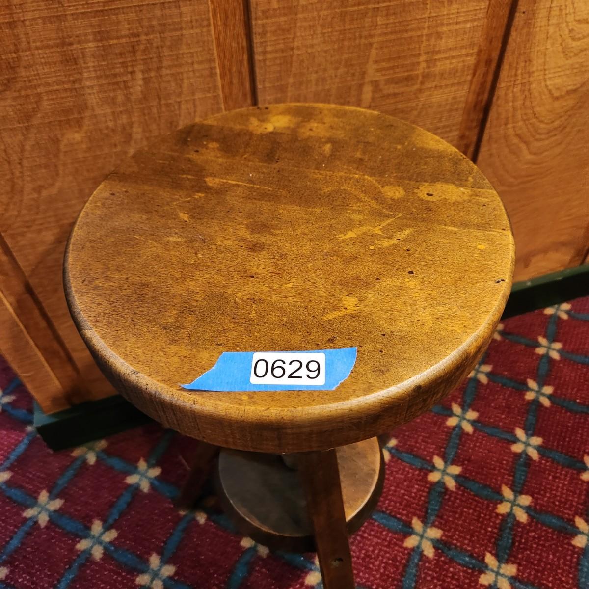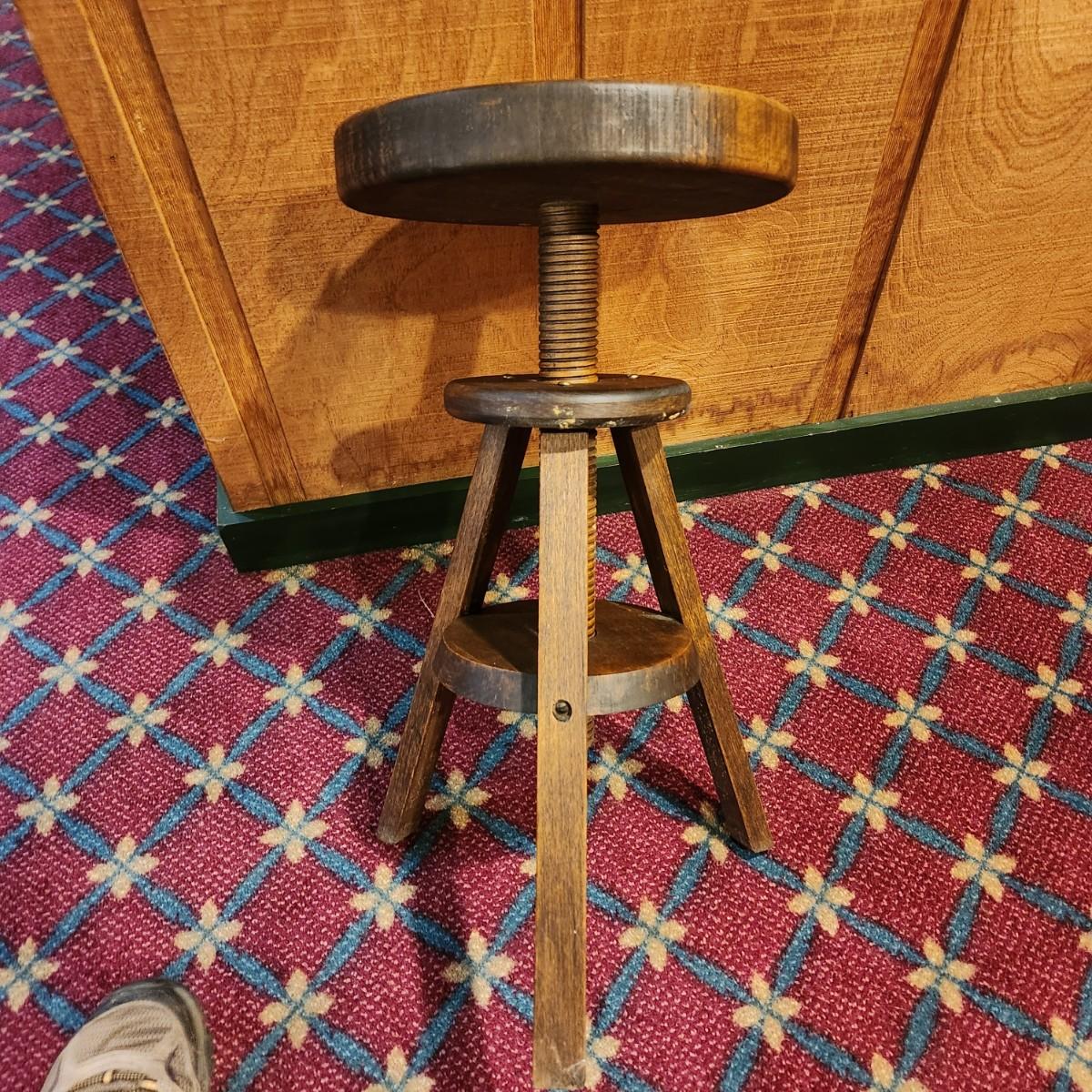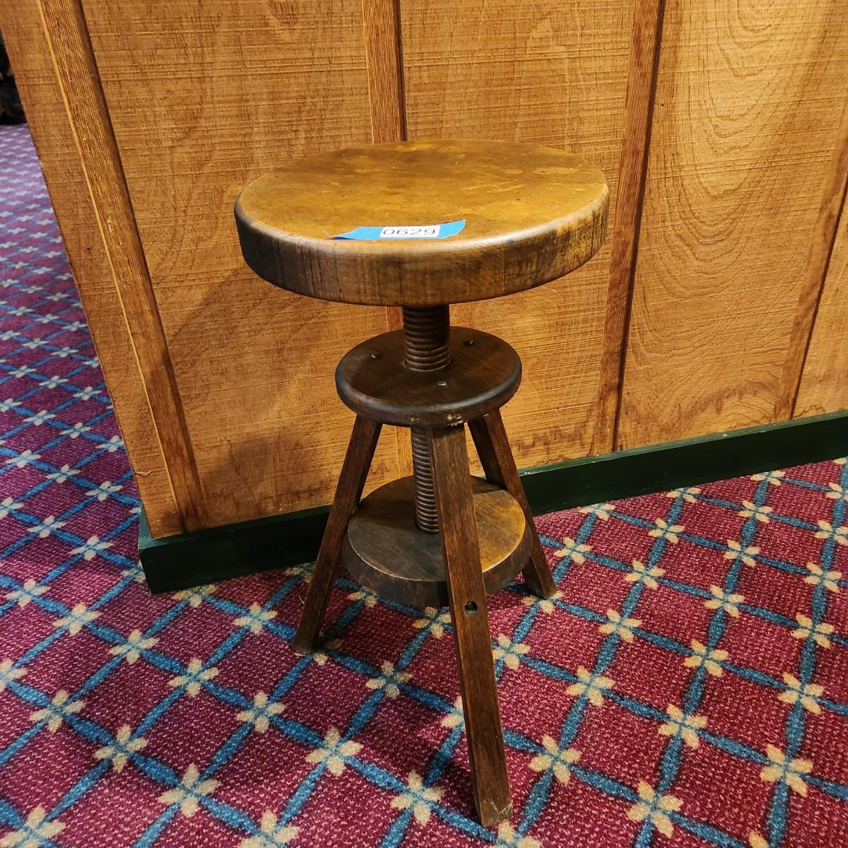 Vintage Solid Wood Round Adjustable Swivel Stool 18" to 24" Height