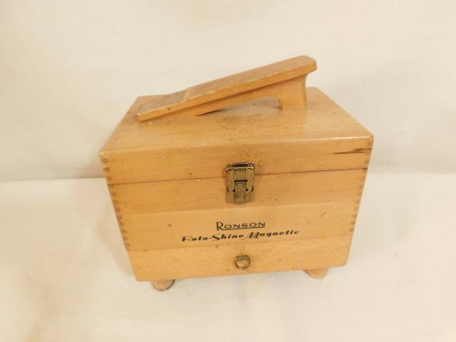 Vintage Solid Wood Shoe Shine Box with Dovetail Corners
