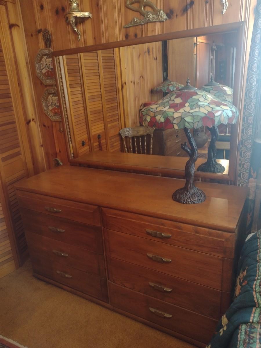 Vintage Solid Wood Stretch Dresser with Mirror by Mengel (No Contents)