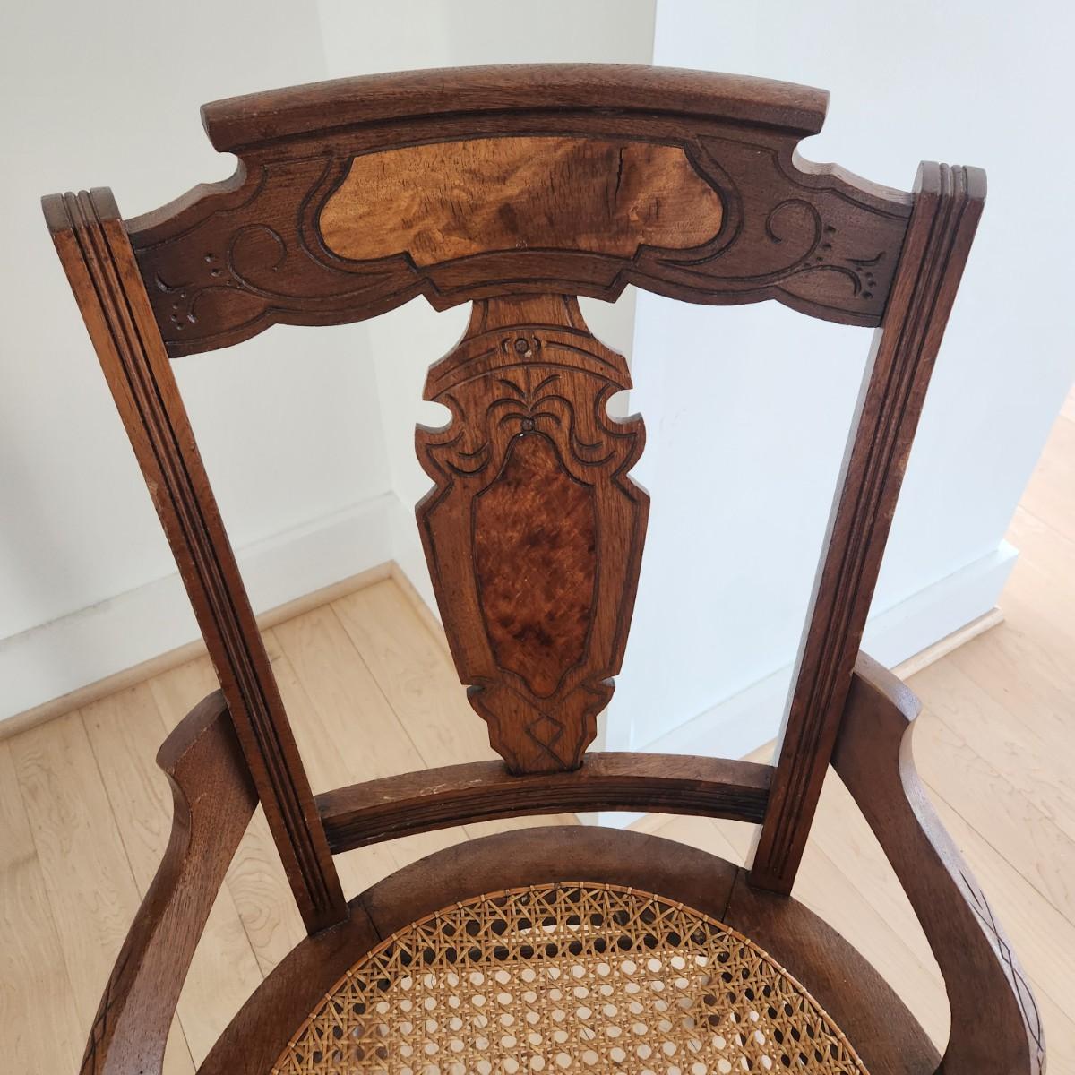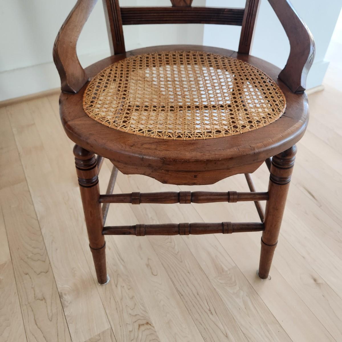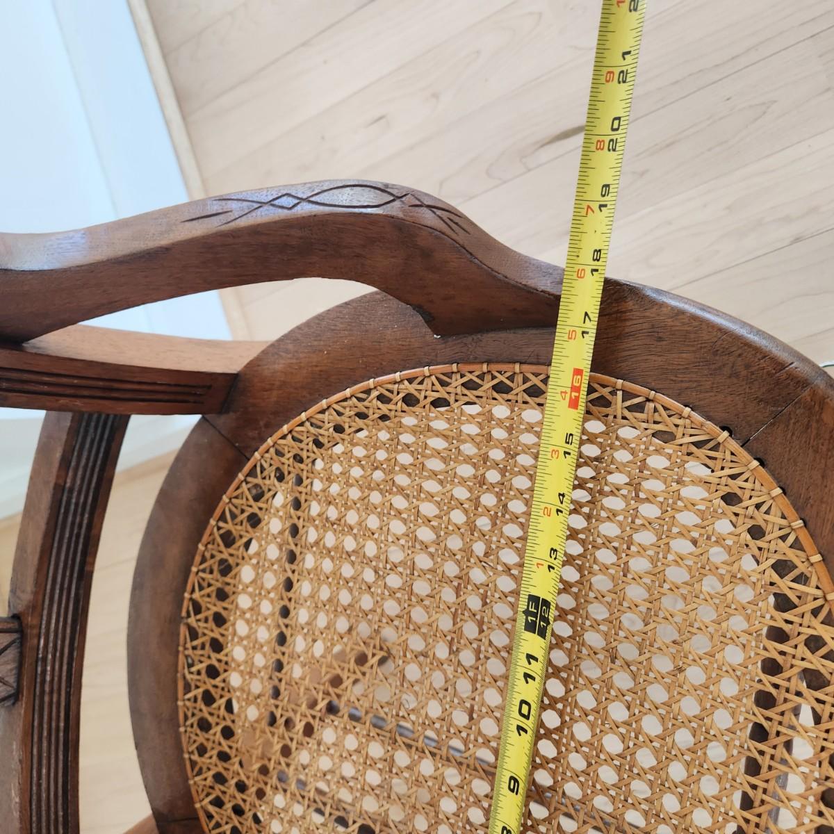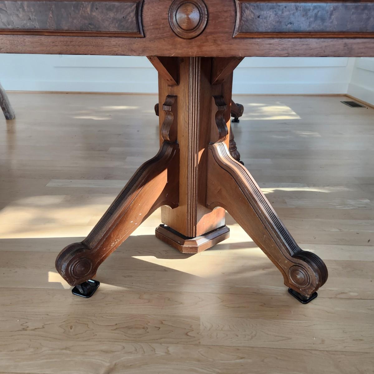 Antique Walnut Dining Table & 5 Cane Seat Chairs 46"X46" w 4 / 12" leaves & 2 / 9 " Leaves